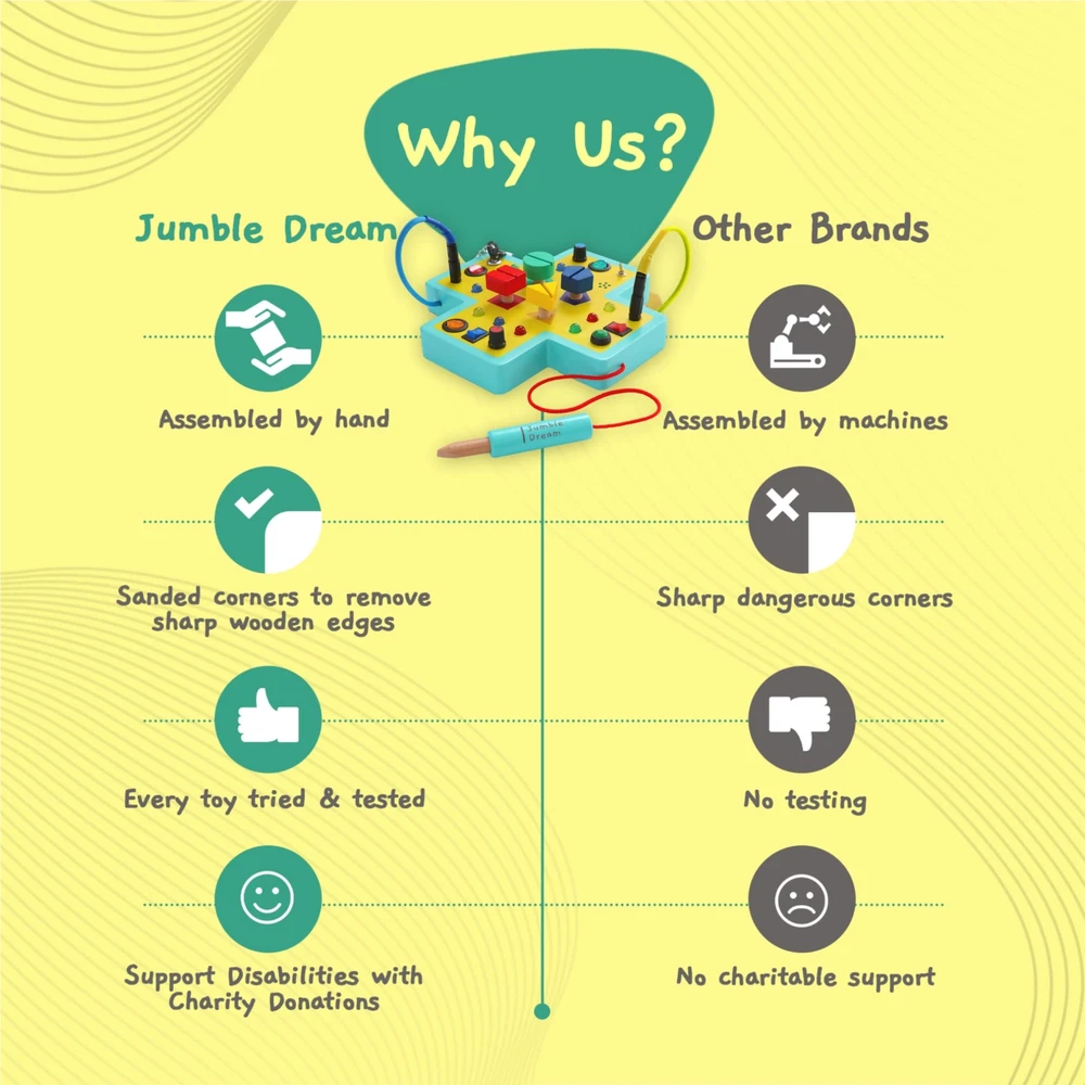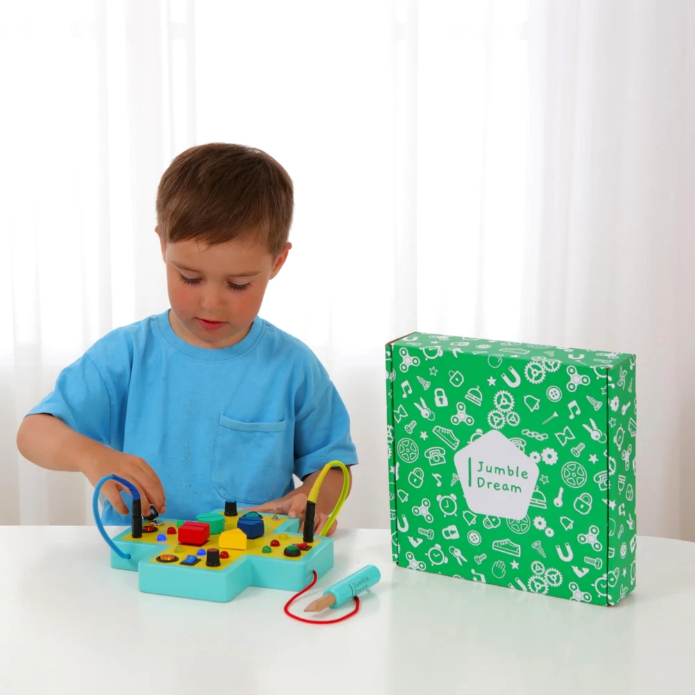 Jumble Dream Montessori Busy Board for Toddlers – 16 Button Switchboard Sensory Toys for Toddlers Activity Board Toys for Autism & ADHD 1-3 Awaken the Little Explorer Within – Join in on our Jumbling Journey of Montessori discovery with a LED busy board designed to boost early developmental skills in children through sensory play and encourage learning, motor & brain growth. Multiple Fidget Toys - This thoughtfully designed sensory board features tons of Montessori style learning features. Including buttons, switches, screws keys, color and shape matching to encourage cause and effect learning. Robust and safe - Our handmade Montessori busy board is an educational toy that offers hours of fun and learning. The toddler sensory toy is expertly crafted with unique designs and sanded to a super smooth finish for safe play making it a playroom essential! Travel Toy Fun: Keep your child entertained on the go with our versatile and durable travel toy. The Montessori board is made with sturdy wood to withstand travel, this toddler activity board offers a variety of activities perfect for the car or airplane Sensory Learning Aid: Our LED fidget board for toddlers is designed to improve cognitive and fine motor skills in children, toddlers and adults with learning difficulties such as autism or ADHD. This learning toy encourages imagination and brain development. Awaken the Little Explorer Within – Join in on our Jumbling Journey of Montessori discovery with a LED busy board designed to boost early developmental skills in children through sensory play and encourage learning, motor & brain growth. Multiple Fidget Toys - This thoughtfully designed sensory board features tons of Montessori style learning features. Including buttons, switches, screws keys, color and shape matching to encourage cause and effect learning. Robust and safe - Our handmade Montessori busy board is an educational toy that offers hours of fun and learning. The toddler sensory toy is expertly crafted with unique designs and sanded to a super smooth finish for safe play making it a playroom essential! Travel Toy Fun: Keep your child entertained on the go with our versatile and durable travel toy. The Montessori board is made with sturdy wood to withstand travel, this toddler activity board offers a variety of activities perfect for the car or airplane Sensory Learning Aid: Our LED fidget board for toddlers is designed to improve cognitive and fine motor skills in children, toddlers and adults with learning difficulties such as autism or ADHD. This learning toy encourages imagination and brain development. Shipping from the USA All of our products are shipped from the USA, ensuring quick delivery to your destination. Payment We offer the following payment methods: PayPal, credit card, bank transfer, and eBay's secure payment system. Free Shipping & Free Returns Shipping within the USA is FREE. Additionally, any return is absolutely free for you. Risk-Free Purchase You have the option to return an item within 30 days without any justification. We cover the return shipping costs! Fast Shipping We ship immediately upon receipt of payment. Generally, the package is delivered within 2-3 days in the USA. If it takes longer, we will contact you. Quality and Costs Made in Europe, USA, China No customs fees or additional charges Total satisfaction guarantee Invoice with declared VAT available upon request in .pdf format Feedback Your feedback is very important to us. After you pay for your purchase, you will automatically receive positive feedback from us.
