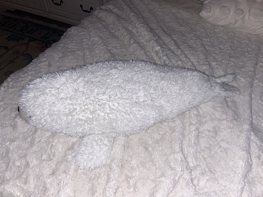 Wonderful for kids or to sleep next to as a body pillow. Used, but cared for! She is washed and has no stains. This Jumbo Harp Seal plush toy from Wild Republic is a must-have for any stuffed animal collector or lover of marine animals. Measuring at an impressive 31 inches, this soft and cuddly seal is the perfect addition to any toy collection. The plush toy is made with high-quality materials and features detailed stitching and adorable facial features that will melt anyone's heart. Ideal for children and adults alike, this Harp Seal plush toy is perfect for imaginative play or simply as a comforting cuddle buddy. With its realistic design and impressive size, it makes for a great gift for anyone who loves animals or wants to add a touch of whimsy to their home decor.