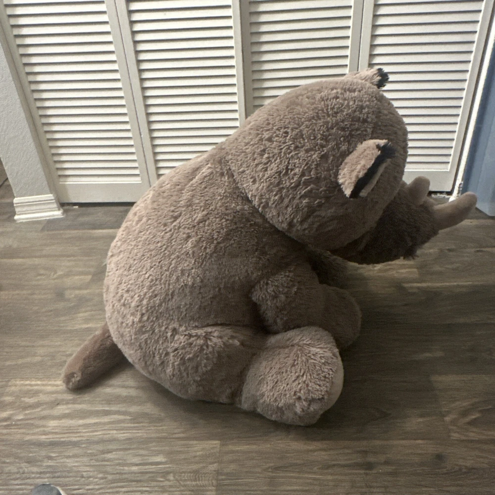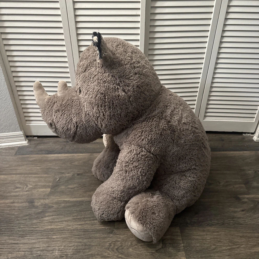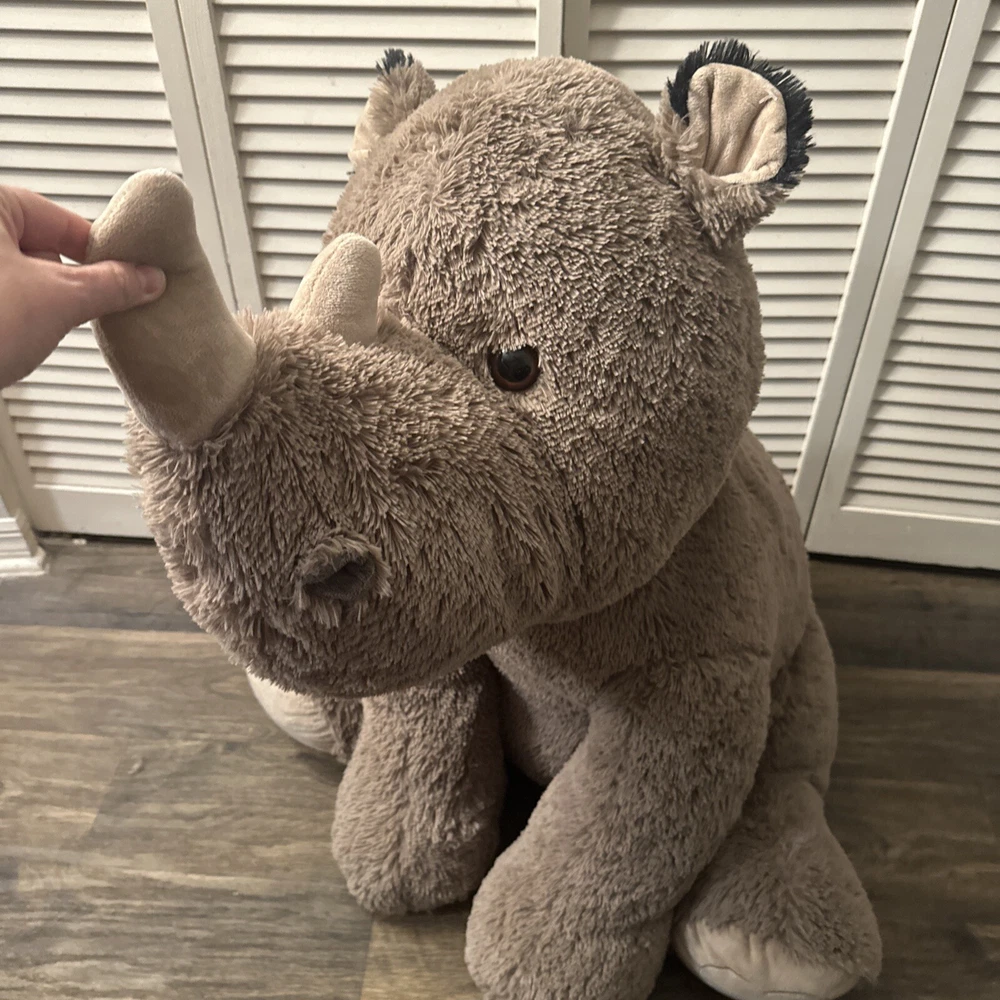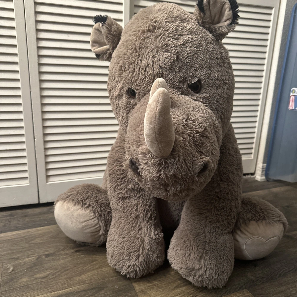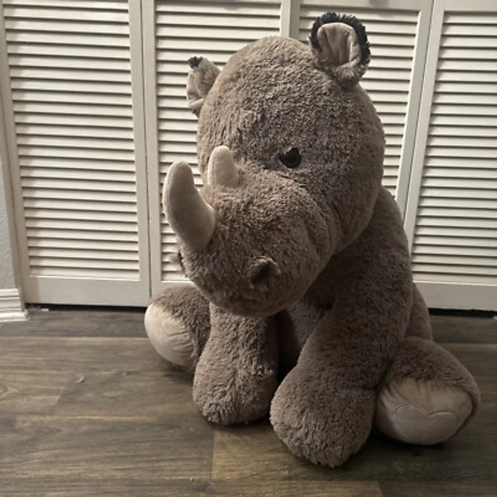 This jumbo rhino stuffed animal is the perfect addition to any collection. Measuring at 40 inches and up, this plush toy is big and soft and snuggly, providing comfort and joy to children and adults alike. Its cute and cuddly appearance makes it a great gift for any occasion, whether it's a birthday, holiday, or just because. With its high-quality materials and attention to detail, this stuffed animal is sure to bring joy for years to come. Its jumbo size makes it a great companion for kids and adults, and its soft and cozy texture is sure to be irresistible. Bring home this adorable rhino stuffed animal today and add a touch of cuteness to your collection.