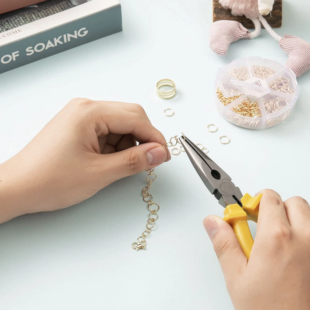 Jump Rings Kit With1000PCS Open Jump Rings 40PCS 12mm Lobster Clasps and Jump Rings Opener for Jewelry Making Keychains and Necklace Repair (Gold) 【PACKAGE】 This box includes more than 1000pcs jump rings, 40pcs lobster claw clasps set and one jump rings opener.These open jump rings and clasps set are suitable for many projects like linking small chain and earrings, making bracelets, repair necklaces, making chain mail and other jewelry related projects. 【VARIETY SIZES】The jewelry making supplies contains a great selection of sizes jump ring for jewelry construction. Five different sizes open jump rings(4mm 5mm 6mm 8mm 10mm) for your choice, which are ideal for making my bracelets, repair necklaces and jewelry related projects.And the size of Lobster Clasps is 12mm. 【EASY TO STORE】Stored in a box in different size, you can be easy to figure out the size, very convenient for your jewelry making or repairs. 【EASY TO USE】 Pick Open Jump Rings in proper, and then use the opener to open the jump ring, use the flat nose pliers to fix the jump ring. A Open Jump Rings great for adults who like jewelry making.Open jump rings are packed in a plastic box to avoid damage or bent in storage. 【WORRY FREE AFTER SALES:】The quantity of our products will definitely exceed 1000.And We offer money-back service for any issues. Please feel free to contact us if you have any questions about the Open Jump Rings. Shipping We offer FREE shipping on all orders! We ship within Three business days of payment, usually sooner. We use a selection of shipping services such as UPS, FedEx, USPS etc. We only ship to the lower 48 states, no APO/FPO addresses or PO Boxes allowed. Local pickups and combined shipping options are not provided at this time. Return You can return a product for up to 30 days from the date you purchased it. Any product you return must be in the same condition you received it and in the original packaging. Please keep the receipt. Payment We accept payment by any of the following methods: PayPal Please pay as soon as possible after winning an auction, as that will allow us to post your item to you sooner! Feedback Customer satisfaction is very important to us. If you have any problem with your order, please contact us and we will do our best to make you satisfied. Contact Us If you have any queries, please contact us via ebay. We usually respond within 24 hours on weekdays. Please visit our eBay store to check out other items for sale! Thank you for shopping at our store.