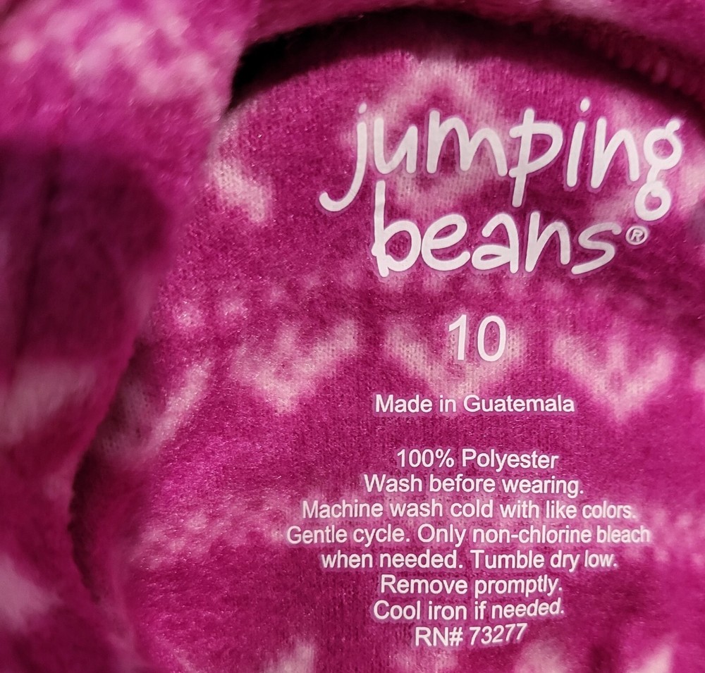 The Jumping Beans Hooded Sweatshirt is a cozy and stylish hoodie designed for comfort and warmth. It features: A vibrant hot pink color with white designs, adding a fun and playful touch. 100% polyester fleece-like material, providing softness, warmth, and durability. A comfortable hood, offering extra coziness and protection from the cold. Size 10, designed for a comfortable and relaxed fit for kids. This hoodie is great for everyday wear, school, or lounging, combining warmth and style in a fun, youthful design.