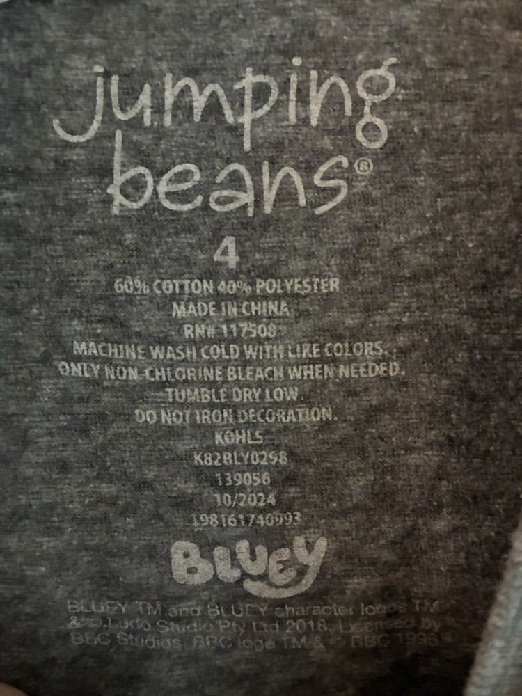 Jumping Beans Kids Boys Bluey Cotton Crewneck Long Sleeve Shirt Heather Gray 4. Condition is pre-owned. Smoke free, pet free home. Shipped via USPS Ground Advantage. In very good condition. Free of rips or stains.