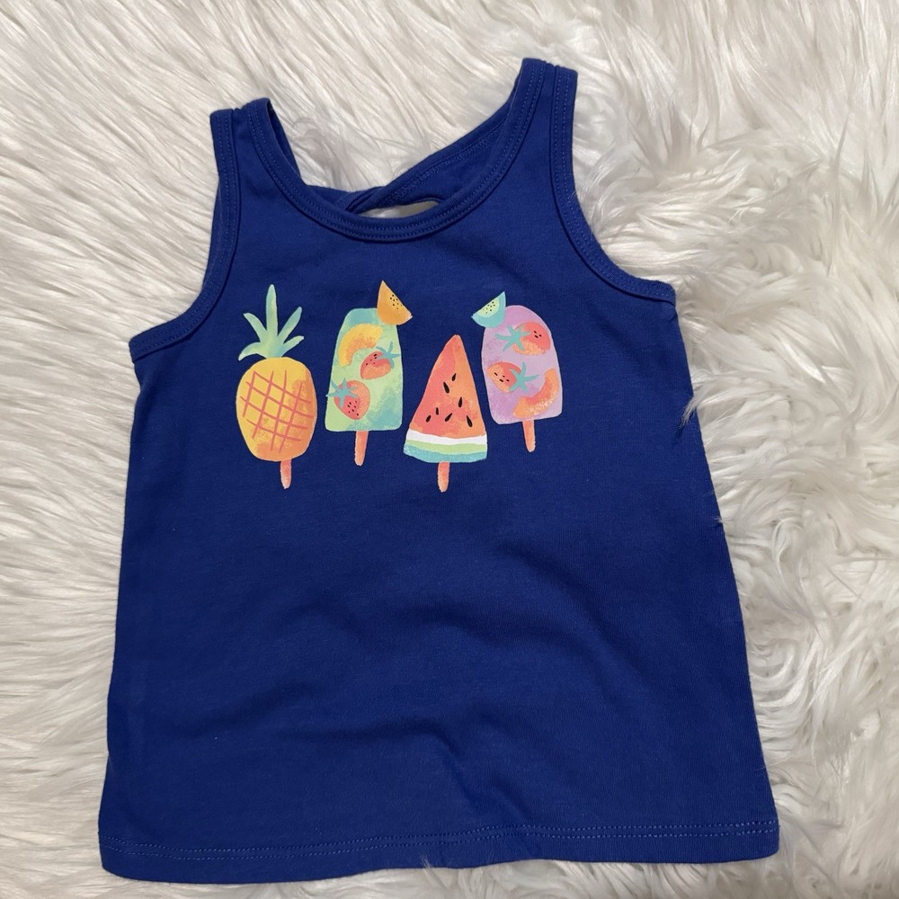 Jumping Beans toddler girls 2-piece outfit set featuring a bright blue sleeveless tank top with a fun popsicle/fruit graphic paired with purple elastic-waist shorts. Soft knit fabric makes this set comfortable and easy to wear for everyday play. Details: • Toddler girls size 18 months • Includes tank top + shorts • Lightweight, breathable cotton-blend fabric • Elastic waist shorts for comfort • Graphic print tank top • Gently used, no major flaws noted (please see photos) Perfect for summer wear, playtime, daycare, or casual outings. Ships fast from a smoke & pet free home.