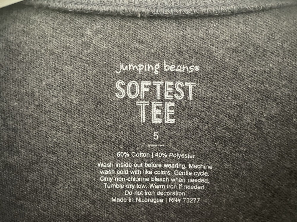 Jumping Beans Softest Tee Kids Boys T-Rex Dinosaur Cotton Crewneck Shirt Gray 5. Condition is pre-owned. Smoke free, pet free home. Shipped via USPS Ground Advantage. In very good condition. Free of rips or stains.