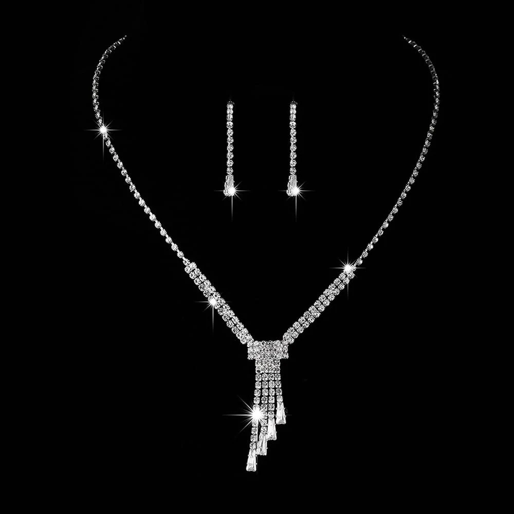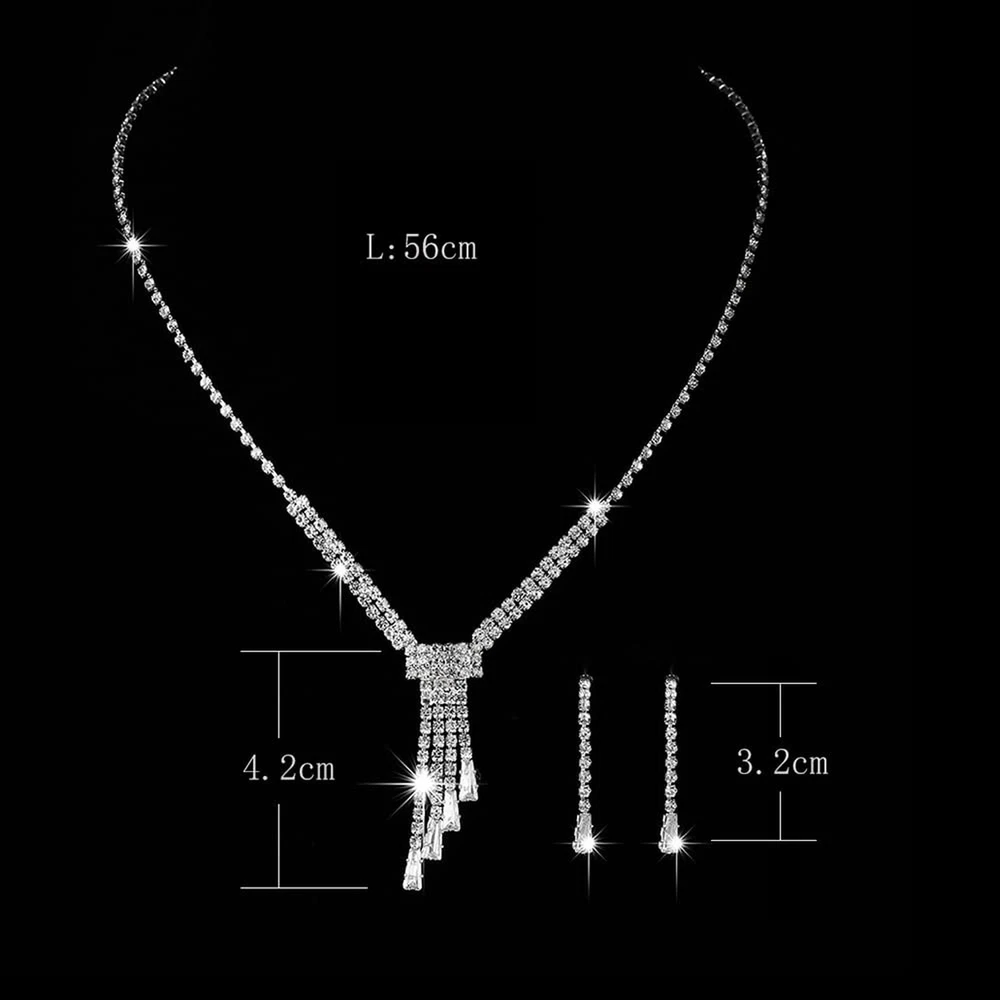 Jumwrit Bridal Necklace Earrings Set - Tassel Necklace & Dangle Earrings - Wedding Crystal Rhinestone Jewelry Set for Women Product Details Package Dimensions : 3.54 x 2.76 x 0.79 inches; 1.06 ounces Item model number : Jumwrit-Neck Earring-28-Style 3 Department : womens Date First Available : December 24, 2021 Manufacturer : Jumwrit Brand, Seller, or Collection Name: Jumwrit Metal: alloy Material: Metal Clasp: Lobster Clasp Model number: Jumwrit-Neck Earring-28-Style 3 necklace earrings