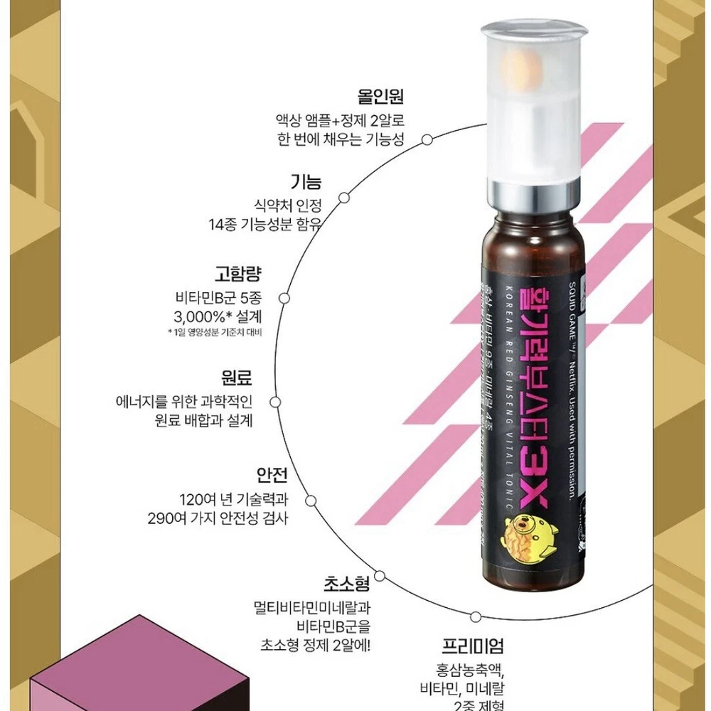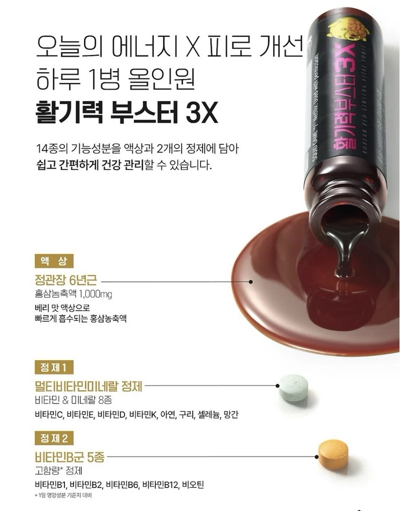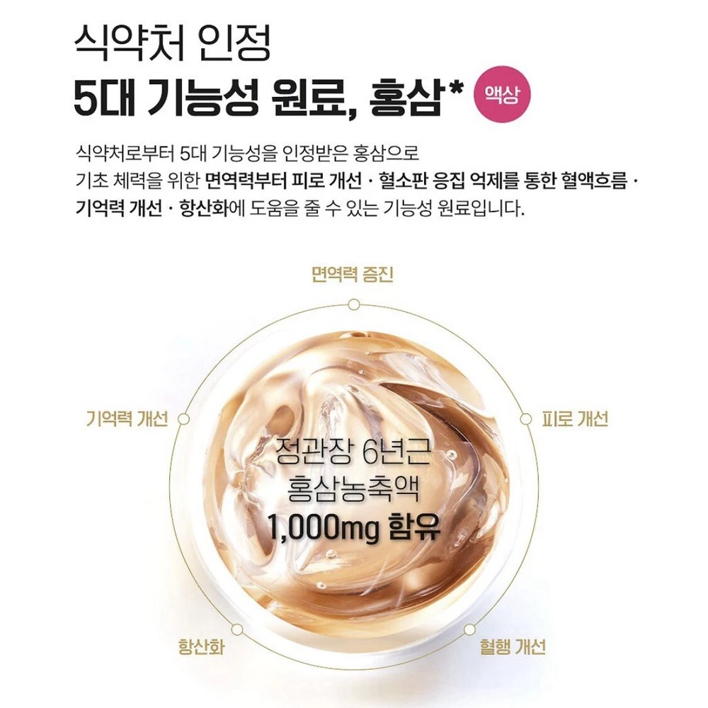 Active Ingredients:Ginseng, Red Ginseng, VitaminDepartment:Adult, Men, Unisex, WomenWhen to Take:Once A DayCountry/Region of Manufacture:Korea, Republic ofBrand:Jung Kwan JangType:ExtractFormulation:LiquidBody Area:BodyMain Purpose:Energy & Endurance, Immune Support