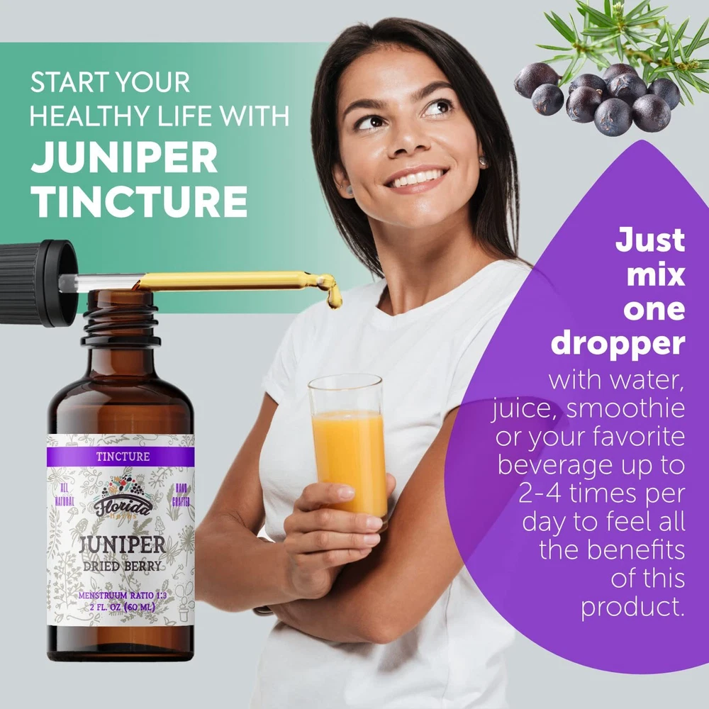 Juniper is a short to a medium-height tree that grows wild in some parts of Europe, North America, and Asia. There are many varieties of juniper, but Juniperus communis is the most common in North America. People use the juniper berry to make medicine. Medicinal preparations include the extract of juniper berry, as well as the essential oil of juniper berry. Don’t confuse juniper berry oil with cade oil, which is distilled from juniper wood (Juniperus oxycedrus). Organic Juniper Extract: Non-GMO, Vegan, Gluten-Free, Alcohol-Free, Made in the USA, About - All products are manufactured in the sunny state of Florida. Florida Herb's is a company that produces products from certified organic grasses or wild herbs. All suppliers have licenses or . Our products - It's commonly known fact that the best quality products are produced in the U.S. We try to excel ourselves and existing standards in quality and in serving our regular buyers. Feel free to try our products and you'll see why our customers choose . Enjoy! OTHER NAME(S): Baie de Genévrier, Common Juniper, Common Juniper Berry, Enebro, Extract of Juniper, Extrait de Genévrier, Genévrier, Genévrier Commun, Genievre, Genièvre, Ginepro, Huile de Baies de Genévrier, Huile de Genévrier, Juniper Berry, Juniper Berry Oil, Juniper Extract, Juniper Oil, Juniperi Fructus, Juniperus communis, Oil of Juniper, Wacholderbeeren, Zimbro. JUNIPER EXTRACT: Hormones free, preservatives free, without artificial ingredients, without antibiotics, gluten free, wheat free, dairy free, sugar-free, soy free, free. HIGHEST QUALITY ORGANIC JUNIPER TINCTURE (Juniperus communis) - products consist entirely of pure ingredients, including wild plants and certified organic ingredients. ORGANIC JUNIPER BERRY form aims to deliver purest high-quality organic products. goal is to manufacture products for a healthy lifestyle and help you reach your perfect state of .