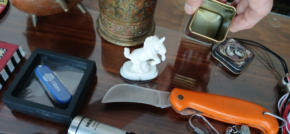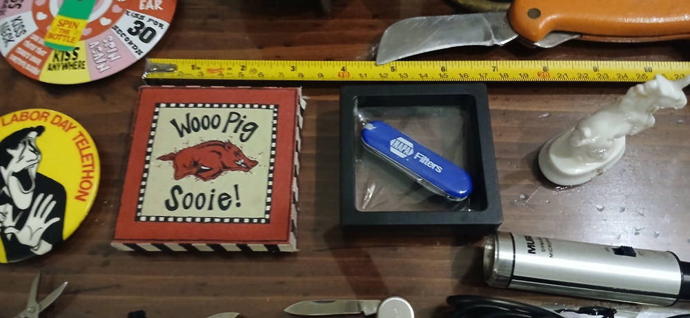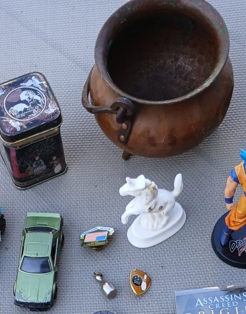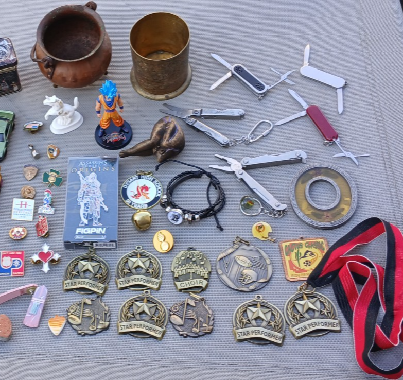 This is a LOT collection of 50+ miscellaneous odds and ends , as well as collectible items . This lot is perfect for individuals who enjoy collecting a variety of items or for those looking for unique pieces to add to their collection. The unit is packed with a mix of items that are sure to appeal to a wide range of collectors with different interests. Thanks for looking and happy bidding! You will receive everything in all the photos! (over 4 lbs!) Contents: Mura Dynamic Microphone Works Great! Klein Tool Inc. Hawkbill Knife w/synthetic orange handles Official emblem Razorback Fan magnet (signed) Encased "Napa Filter" blue handles pocketknife collectable 1 car collectable Brass mini-Caudron pot (a couple dents as shown in pics) Brass container with ornate/intricate design White porcelain Unicorn (Schmid 1981) collectable Oriental designed mini tin container w/lid 2 micro-tools 3 mini pocketknife multi-tools Corded bracelet with initial "B" (adjustable size) Several Medals w/lanyard Several pins of various kinds 1 pair unique earrings Dragonball Fighter 2 resin figurine Assassin's Creed Origins Figpin Bayek #62 (Collect them all!) 2 Large pins "The Jerry Lewis Labor Day Telethon" and "Spin the Bottle" Miami Dolphins football helmet collector pin other items Check out my "Buy it Now" and other live auctions, please. ONLY ships to the lower 48 states. God Bless!