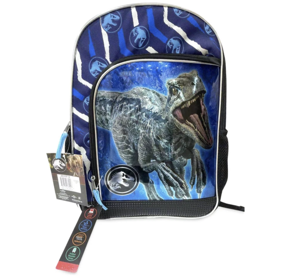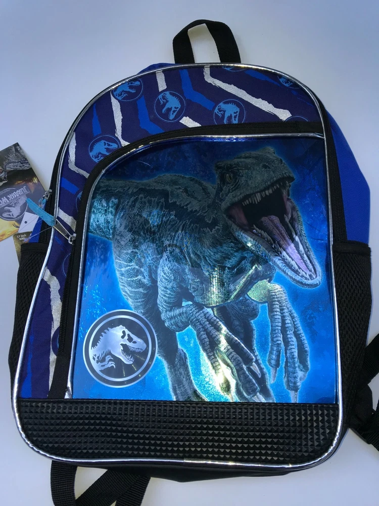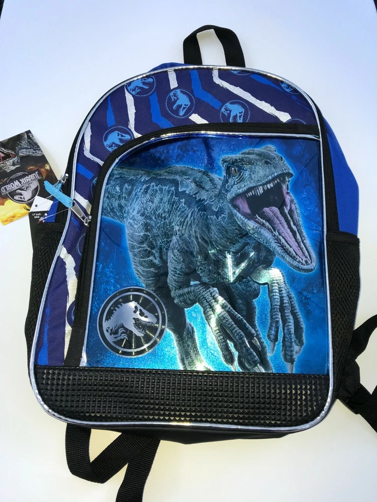 Jurassic World 17" Backpack Blue Metallic Book Bag RARE Brand-new, perfect condition, ships same or next day, ships worldwide Includes 17" School Backpack, standard size T-rex Dinosaur from a smoke-free and pet-free environment Attention VeRO members: We're not affiliated with or endorsed by the companies mentioned in this listing. All trademarks and copyrights are acknowledged, they are only used for informative description of the items offered for sale. All items are authentic as evidenced in photos, legally acquired and owned, and hence covered under First Sale Doctrine. Unlawful VeRO removal of this listing will constitute perjury and result in legal action