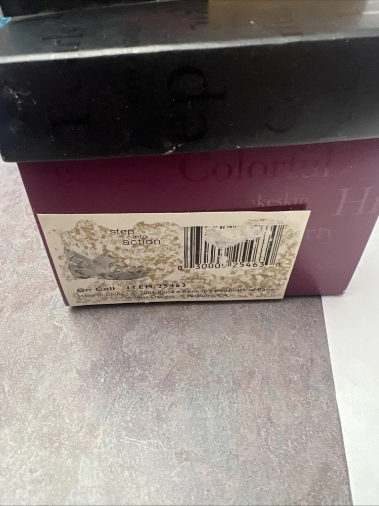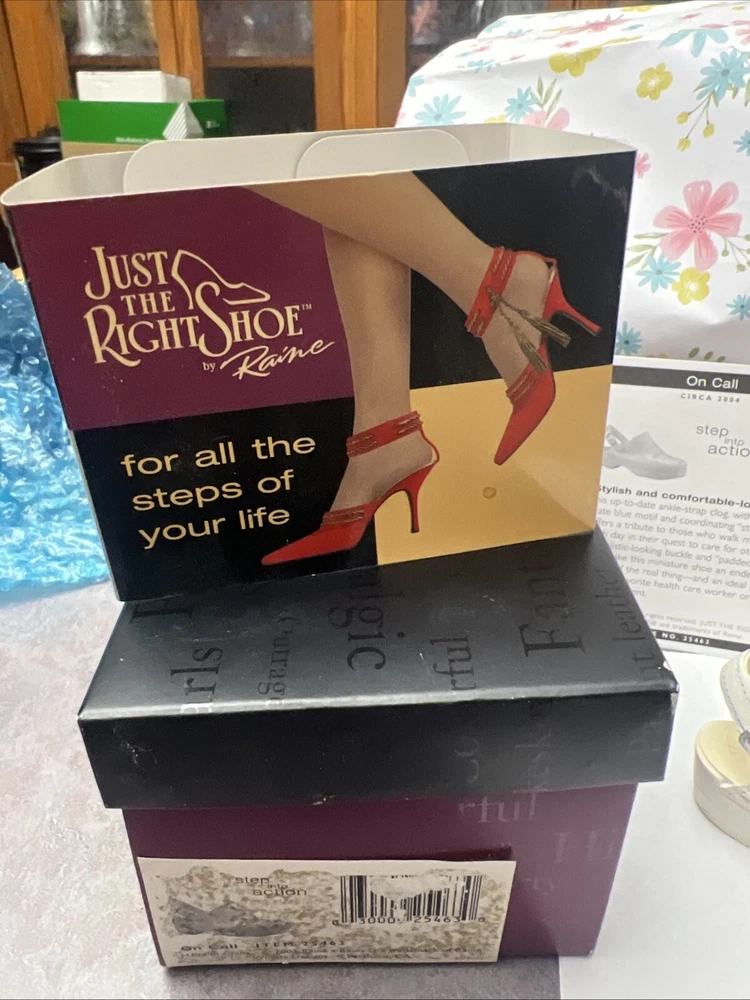 Care Instructions:Clean with Dampen ClothBrand:RaineFeatures:BoxedYear Manufactured:2003Subject:ShoeCollection:Just the Right ShoeType:FigurinePackaging:Box