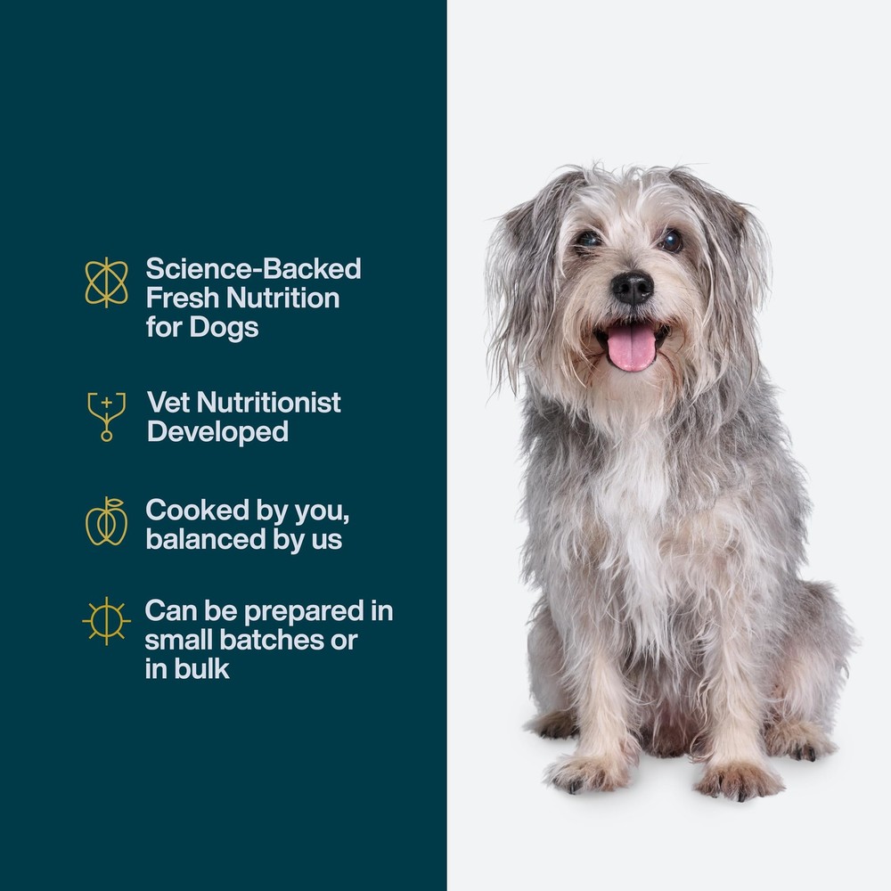 JustFoodForDogs DIY Nutrient Blend for Homemade 4.55 Ounce (Pack of 1), Description The Beef & Russet Potato Recipe is one of our most popular diets, and with our Do It Yourself Nutrient Blend for homemade dog food, you can now make this nutritionally balanced* recipe fresh from your kitchen. This higher-calorie recipe is gluten-free, and grain-free, and incorporates lean ground beef, russet potatoes, sweet potatoes, green beans, carrots, beef liver, green peas, and apples. The result is a wholesome, fully balanced* diet that's perfect for active adult dogs and/or underweight dogs. We make cooking at home for your dog easy! You supply the whole-food ingredients, we supply the recipe and shopping guide, the nutritionally balanced nutrient blend, and easy-to-follow cooking instructions. Our DIY Nutrient Blend creates a complete and balanced meal when made following our recipe instructions. Our DIY Nutrient Blends alone do not constitute a balanced meal, which is why they're described as "intended for intermittent or supplemental feeding." Please use the Cooking Guide to purchase ingredients at your local store or market. Our DIY meals are only nutritionally balanced for long-term feeding when following our exact recipe and using the respective Nutrient Blend. Features: PROMOTES HEALTHY COAT & SKIN: The beef recipe promotes a healthier coat and skin by boosting your furry friend's immune system with wholefood ingredients. COOKING GUIDE INCLUDED: Each Nutrient Blend for homemade dog food comes with full recipe and step-by-step cooking instructions to ensure your dog gets a well-balanced diet. FOR COMPLETE & BALANCED HOMEMADE DOG FOOD: The Beef & Russet Potato DIY is a Proprietary Nutrient Blend perfectly balanced for active adult dogs or underweight dogs. VETERINARIAN DEVELOPED: Nutrient Blends are formulated specifically for each recipe to meet AAFCO recommendations. The blend is compounded from 100% human-grade nutraceuticals regulated by the FDA. Product Details: Handling We will ship all orders within 1 business day of payment. Delivery We Do Not Ship Outside of the Continental US. Return Policy All items qualify for returns within 30 days of receipt. Buyer is responsible for return shipping on any item that is not damaged. Feedback We take our reputation seriously, we buy and sell online, so we understand the value of trust. If you are unsatisfied with your order, please contact us and we will work with you to resolve it to your satisfaction.