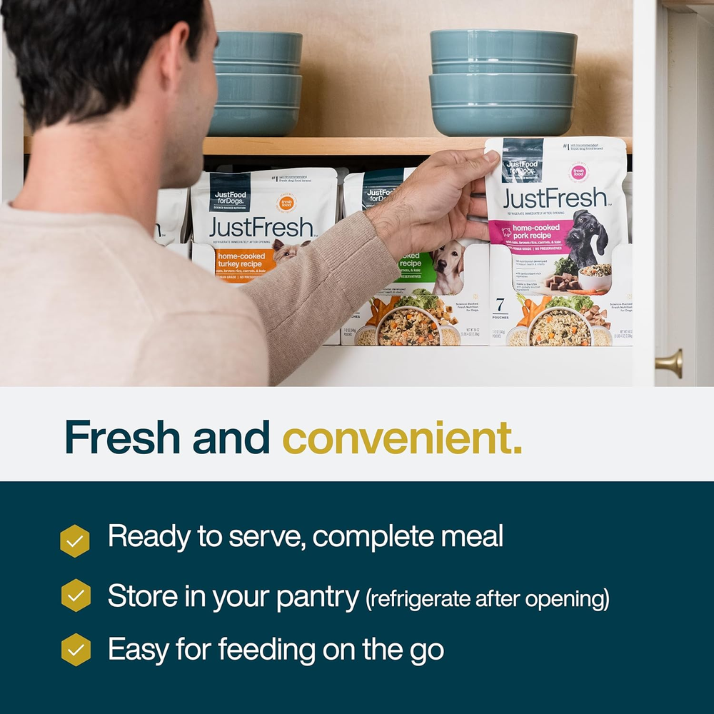 Store New Arrivals Add to Favorite View Feedback Contact JustFresh Wet Dog Food, Fresh Pet Meals and Toppers with No Preservatives, Resealable Package, Human Grade, Home-Cooked Chicken, 12 oz - 7 Pack Description Age Range Description All Life Stages Number of Items 7 Age Range (Description) All Life Stages Package Dimensions 7.99 x 6.5 x 6.5 inches; 12 ounces Specific Uses For Product Immune Support, Skin and Coat Health, Weight Management Item Weight 12 Ounces Target Audience Keyword Dogs, dogs Flavor Name Chicken Directions Store in pantry. Once opened, reseal and refrigerate. Use within 5-7 days. Flavor Chicken Size 12 Ounce (Pack of 7) Item Form Pate Specific Uses for Product Immune Support, Skin and Coat Health, Weight Management Item Package Dimensions L x W x H 7.99 x 6.5 x 6.5 inches Breed Recommendation All Breed Sizes SCIENCE-BACKED NUTRITION: Fresh dog food and dog food toppers developed by veterinary nutritionists to support health and vitality. Healthy dog food and science backed diet informed by over a decade of research, ensuring premium dog food quality. 100% HUMAN GRADE DOG FOOD: Our limited ingredient dog food is made with fresh whole foods that are gently cooked for optimal nutrient absorption across all life stages and sizes, from puppy food to senior wet dog food and small breed to large breed. PRESERVATIVE-FREE: Storing dog food wet is easy with FreshLink technology and resealable dog food pouches. JustFresh shelf stable food stays good for up to two years. Opened, keep your fresh pet dog food refrigerated with easy, resealable storage. USE AS A FULL MEAL OR DOG FOOD TOPPER FOR PICKY EATERS: While JustFresh is formulated as a complete and balanced meal, our soft dog food can also be used as dog food toppers for dry food for those picky eaters. #1 VET-RECOMMENDED FRESH DOG FOOD BRAND: JustFoodForDogs pioneered the fresh dog food category and are the only fresh dog food brand used in feeding trials published in peer-reviewed scientific journals. Nourish your furry companion with JustFresh, healthy dog food made with the same high-quality ingredients you would feed yourself. This natural dog food comes in convenient, resealable pouches and is veterinarian-formulated for complete and balanced nutrition. The science backed, highly digestive formula is great for immune support, skin and coat health, weight management. Unlike kibble, canned dog food, dehydrated or freeze dried food, or refrigerated dog food alternatives, JustFresh is ready-to-serve, easy-to-store fresh food for dogs that uses 100% human-grade ingredients with no preservatives. Made in the USA from globally sourced ingredients, JustFresh is designed to be a standalone meal but the soft dog food is also perfect for picky eaters as dog toppers for dry food. New to food toppers for dogs? Not only do dog food toppers wet a bowl of kibble for added hydration, they also offer additional nutrients and flavor. Available in sampler variety packs or single-flavor pouches (home-cooked turkey, home-cooked beef, home-cooked chicken, and home-cooked pork), JustFresh brings excitement and nutrient-rich flavor to fresh dog foods for all life stages and sizes: puppy, adult dog, senior dog, small breed, large breed, and more. Shelf-stable with a shelf life of up to 2 years unopened, there’s no need for refrigeration until after opening, keeping your dog food fresh and making it an ideal choice for travel, boarding, or as camping freeze-dried food and dry dog food alternatives. Once opened, reseal the pouch, keep your fresh dog food refrigerated, and use within 5 to 7 days for optimal freshness. Enjoy the convenience of giving your pet fresh dog food—nutritious human grade food for dogs ready anytime, anywhere. ABOUT US We offer the best prices around on high quality products. Our E-store includes media such as books, movies, music and games while offering electronics, toys, sporting apparel, clothing, tools, general home, garden items and more. SHIPPING We are always working hard to ensure your package arrives as soon as possible. Please understand that some factors like weather, high postal traffic, and the performance of shipping companies are outside of our control. We offer free shipping to the lower 48 states and ship within 2 business days of payment, usually sooner. We do not accept P.O. Boxes. Please provide a physical address. For shipping outside of the continental USA, we only use eBay's Global Shipping Program.The item is shipped to KY and then sent to the rest of the world. International customers are responsible for all duties and taxes. Continue to check out in order to calculate costs for shipping the item to your country. Messages regarding eBay's Global Shipping Program MUST be directed at eBay EXCLUSIVELY. RETURNS We offer a 30-Day Return Policy on items which you are not completely satisfied with. You have the option for a full-refund or an exchange of the item. No returns are available on items shipped outside of the USA. PAYMENT We accept PayPal. CONTACT US This page content is yet to come Please ad us to your favorite seller and visit again later Thank You CUSTOMER SATISFACTION We try our very best to make sure every customer is completely satisfied. If there's a problem, message us! We're happy to help. WE ACCEPT Copyright © 2021 AutoDS. | All Rights Reserved