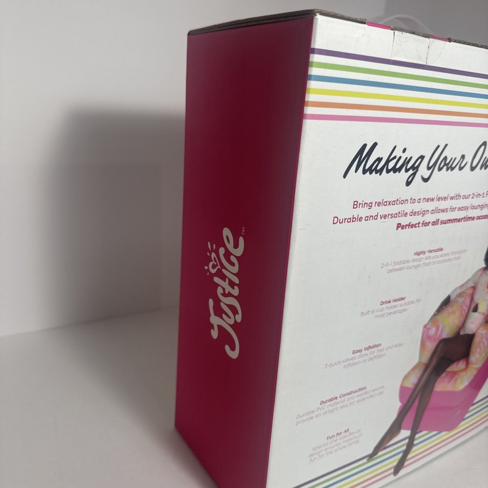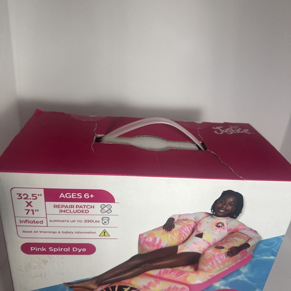 Shape:LoungerColor:PinkType:Pool RaftBrand:JusticeCountry/Region of Manufacture:ChinaAge Level:4-7, 8-11 Years, 12-16 Years, 17 Years & UpUPC:0810106231563Year:2021MPN:2531002WMRecommended Age Range:6+gtin13:0810106231563