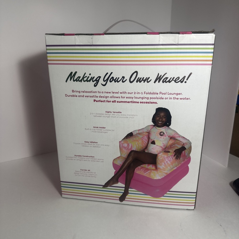 Justice 2-in-1 Foldable Pool Lounger - Lounger Float & Poolside Chair - Pink NEW
