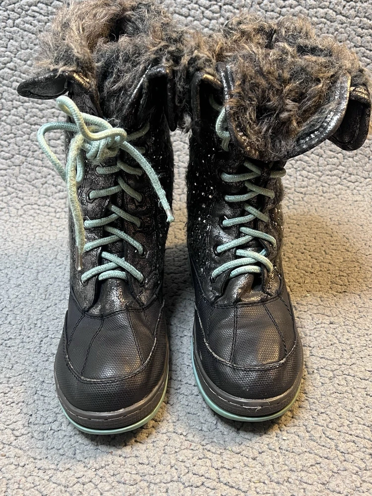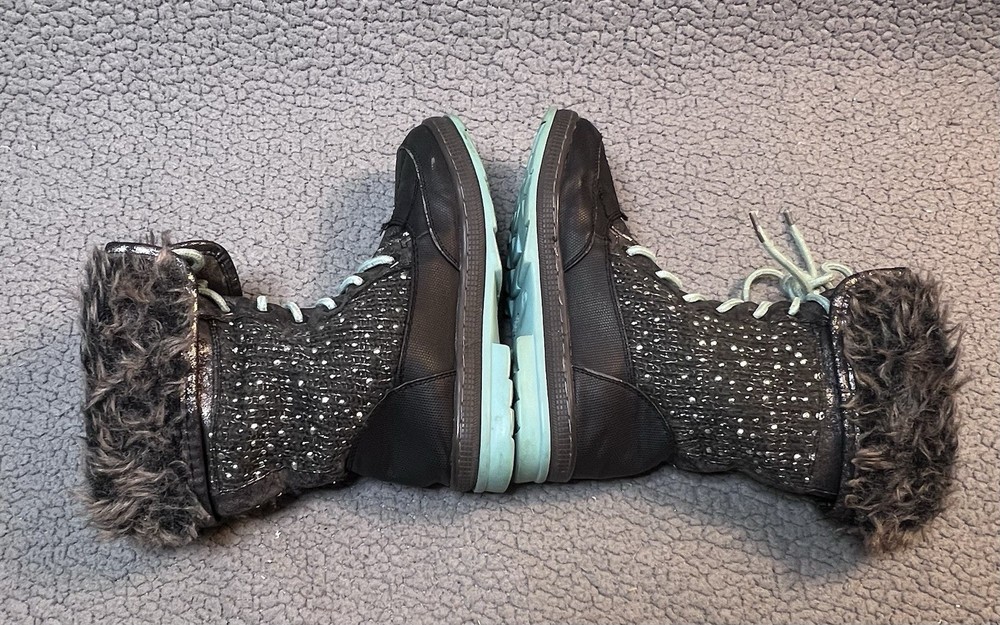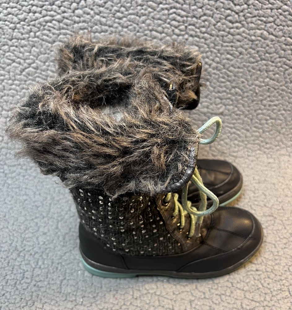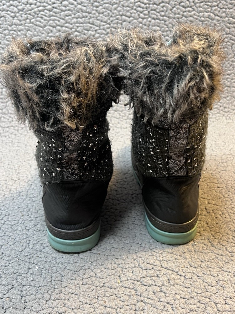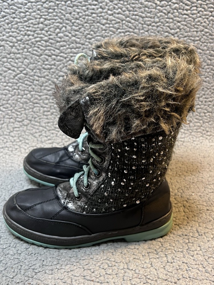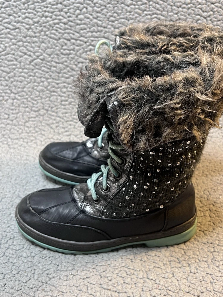 Justice Sparkle Snow Boots Girls Size 3 Gray And Blue With Faux Fur good condition any flaws are shown in photos SKU(A336)