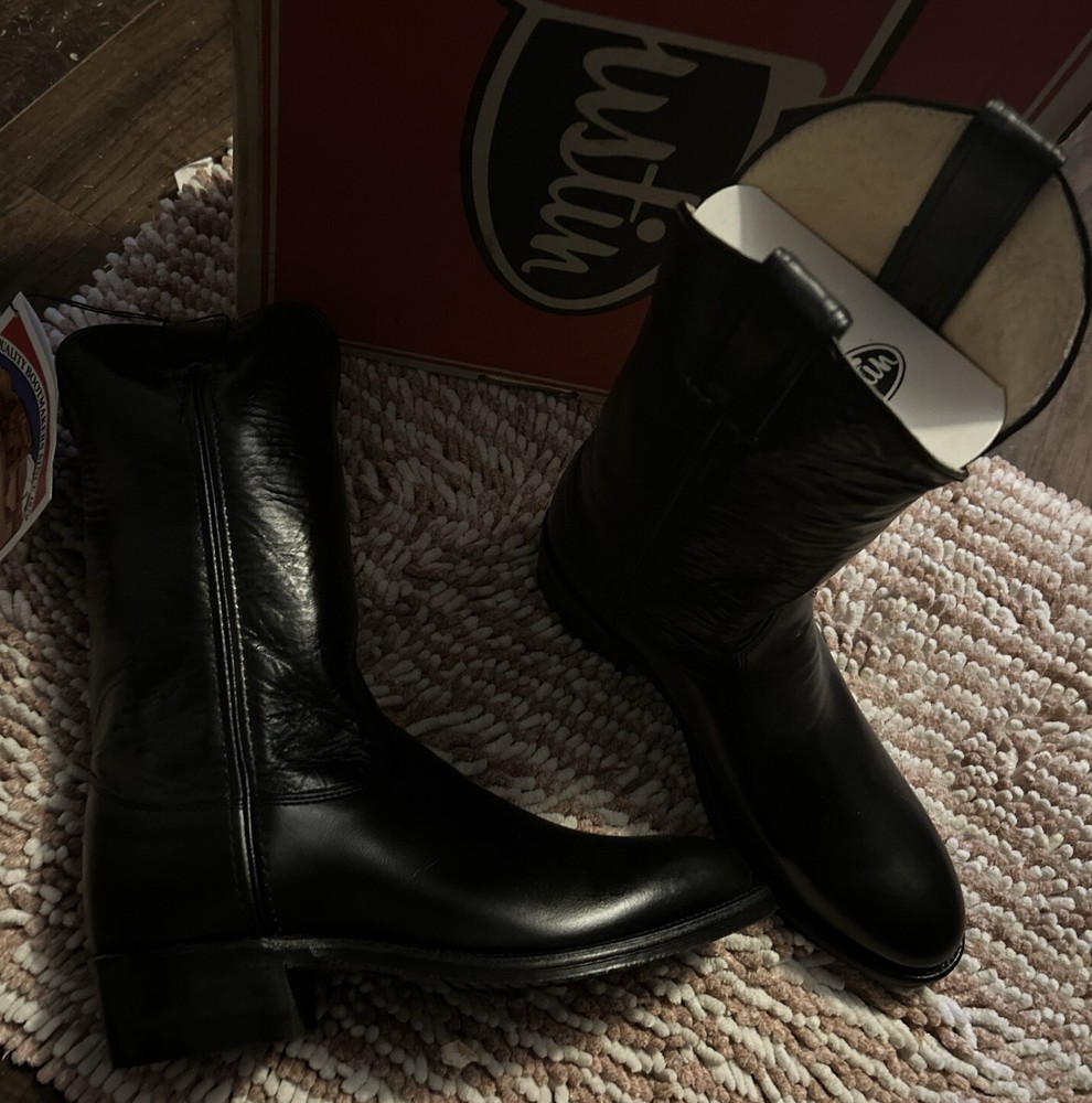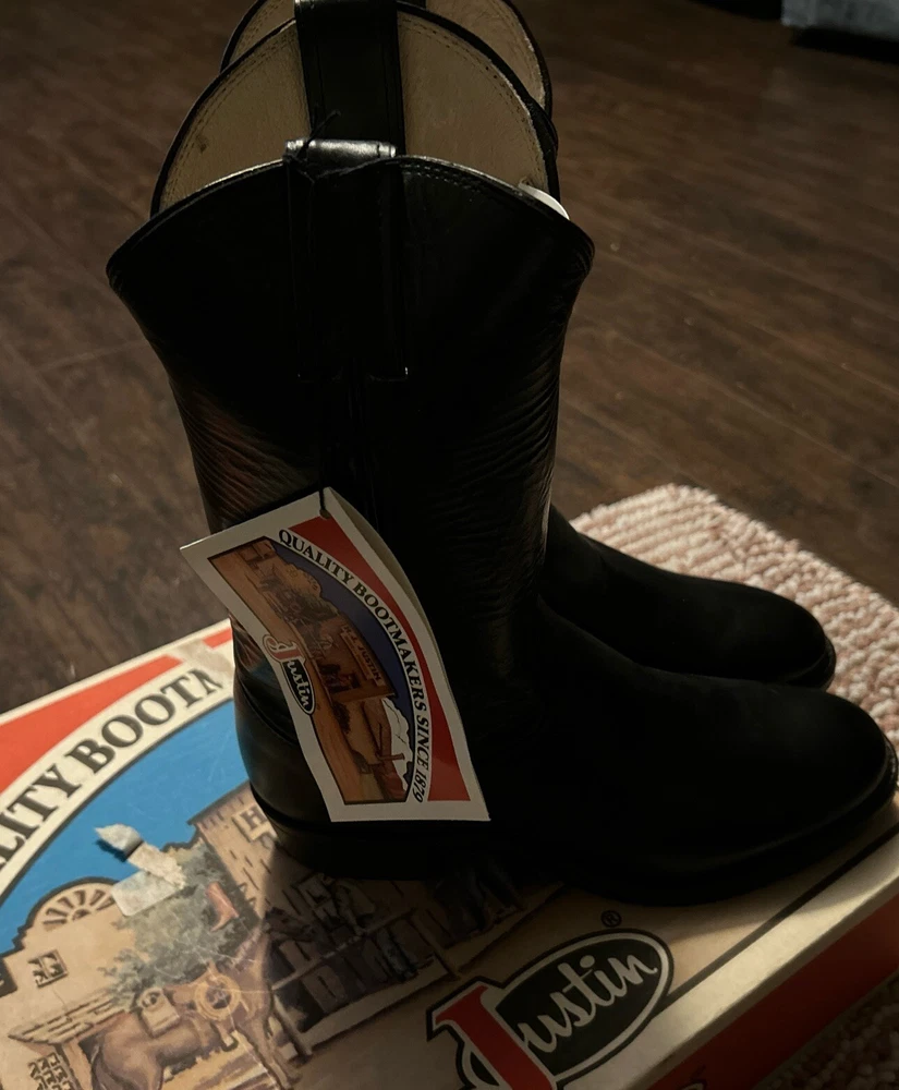 Outsole Material: Leather Brand: Justin Boots Style: Western Upper Material: Leather Season: Fall, Spring, Summer, Winter US Shoe Size: 8 Closure: Pull On Department: Men Character: Boots Product Line: Justin Basics Color: Black Model: 3040 Pattern: Solid Theme: Western Occasion: Casual, Travel, Workwear Type: Boot Manufacturer Color: Black Shoe Width: D