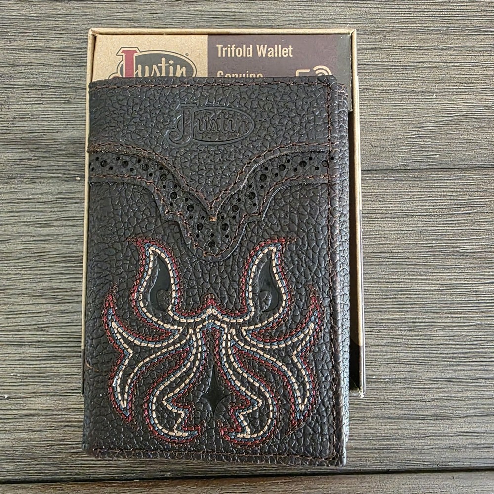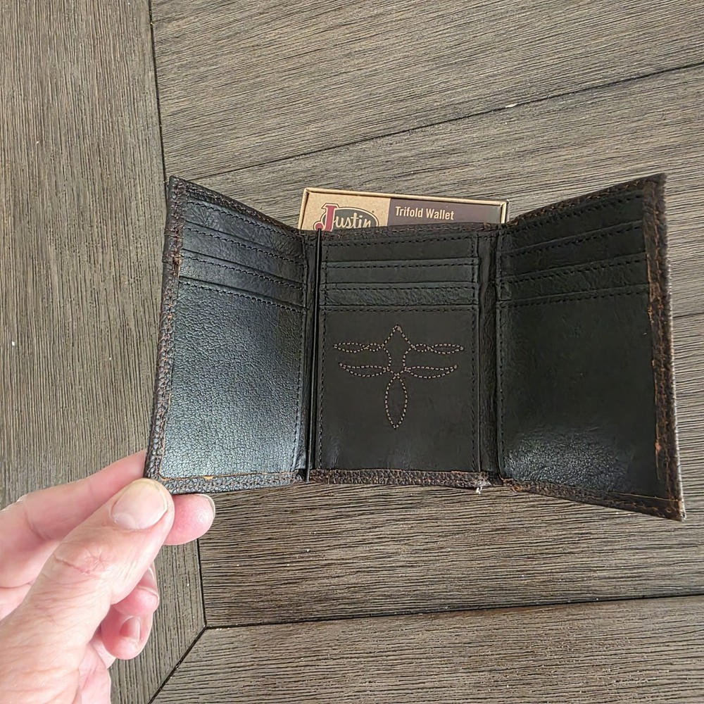 Justin Boots Genuine Leather Men's Trifold Wallet w/ RFID Stitched Logo Western
