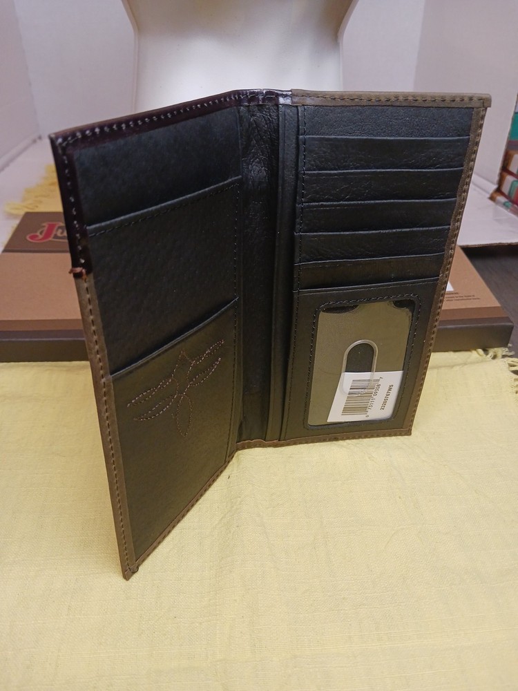 The Justin Boots Mens RFID Rodeo Wallet in Brown Leather is a stylish and functional accessory for men who appreciate a western theme. Made from high-quality leather with decorative accents, this bifold wallet features RFID blocking technology to protect your credit cards and personal information. The wallet's design includes multiple compartments for organizing your cards and cash, making it easy to keep your essentials secure and accessible. Perfect for those who love the rodeo or cowboy lifestyle, this wallet combines practicality with a touch of Western flair.