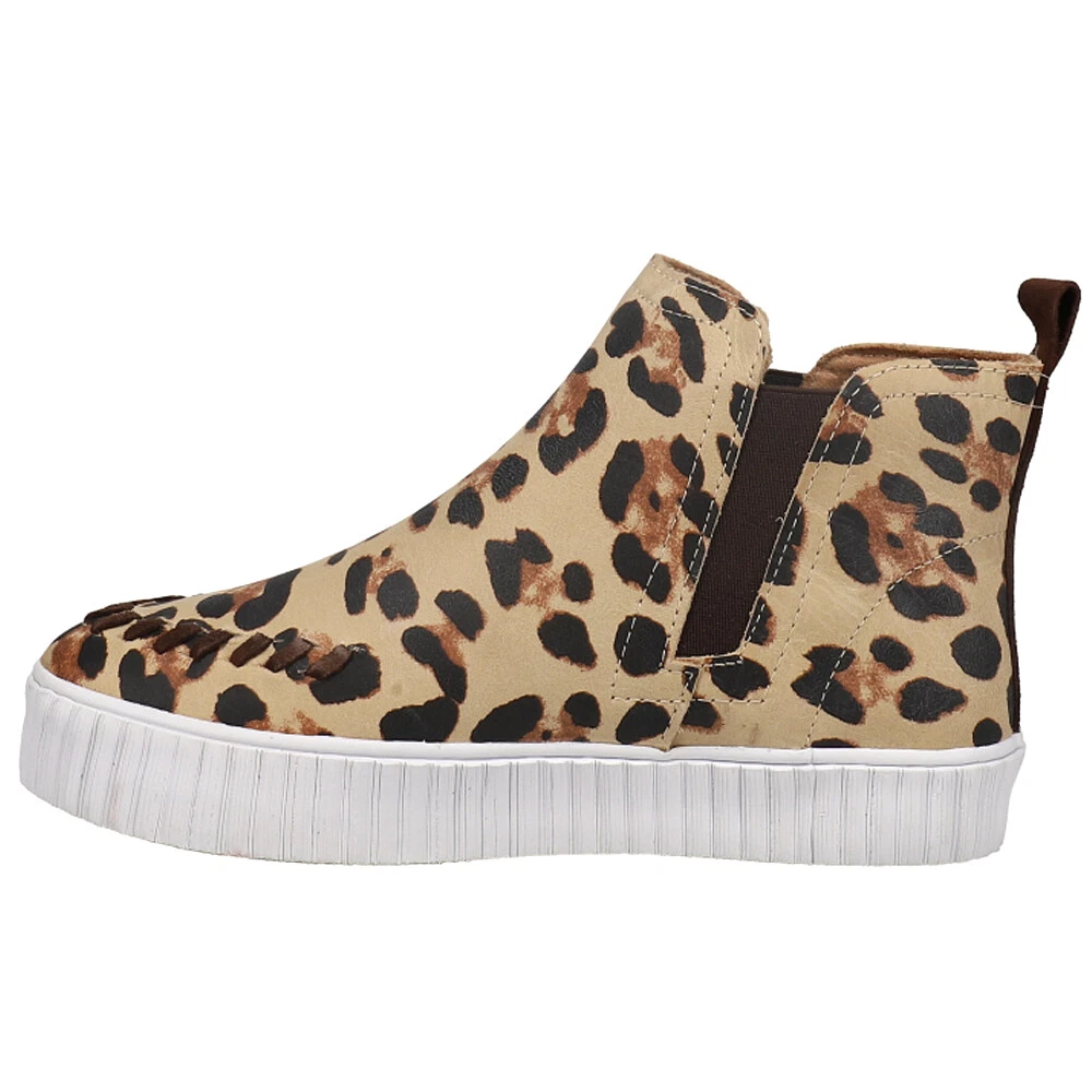 Reba X Justin Broadway Leopard High Top Sneakers RML094 Product Details Textile upper Round toe High top slip on Cushioned insole Rubber outsole Express your wild side in style with the cozy comfort of the favorite high top slip-on, the Broadway - now in a fun and fashionable exotic-inspired print. You’ll love its sleek look and the feel of the cushioned insole that’s inside. Additional Details Color: Brown Occasion: Casual Gender: Womens Age: Adult Brand: Justin Boots