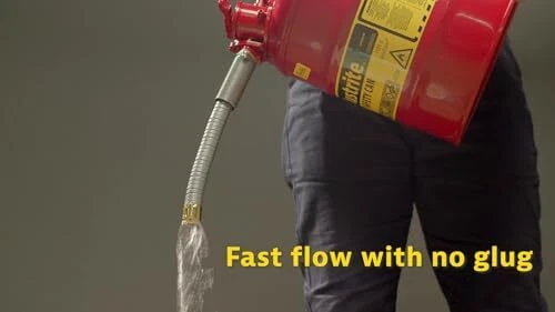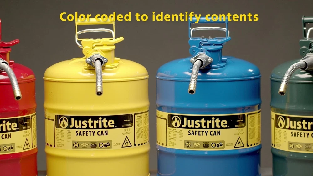 Justrite 5 Gallon Type II Red Safety Gas Can for Gasoline with Flame Arrester, Self-Closing Lid, and 5/8" Flexible Metal Spout, Made in the USA, Galvanized Steel Flammable Storage Can, 7250120 Easy-to-fill! Two-openings; one for targeted pouring, one with ergonomically designed lift-lever for easy filling. The flexible 9" long metal hose spout helps control the pour into smaller openings Justrite's patented manifold and proportional flow-control Safe-Squeeze trigger provides you the means to regulate the flow rate when handling flammable liquids Made in the USA from high-grade coated steel, each can is pressure tested to ensure quality. The tough powder-coat finish resists chemicals and stands up to the demands of rigorous use Approved by FM, UL/ULC, and TUV; also meets OSHA and NFPA requirements. Large ID zone permits user labeling of contents to avoid misuse Stainless steel flame arrester offers exceptional corrosion protection, safe, secure placement of gas nozzle, and reliably dissipates heat to prevent flashback ignition Justrite engineered for the highest performance in safety, compliance, and convenience. Going beyond protection and compliance, AccuFlow Type II Safety Cans provide fast, precision pouring when handling flammable liquids. Patented, innovative manifold automatically vents for smooth, glug-free liquid flow, while the comfortable Safe-Squeeze trigger offers maximum control when pouring. A 9-inches flexible metal hose offers targeted pouring into small openings. Fill port with ergonomically designed handle makes filling easier than ever. Protection features include a long lasting, stainless steel flame arrester that dissipates heat to prevent flashback ignition and a gasketed, self-closing leak tight lid that automatically vents to guard against rupture or explosion. Warning label with extra large ID zone permits user to identify contents, department location, or individual user name. All can sizes have extra capacity for mixing in additives for two cycle engines. Superior chemical resistance. Excellent corrosion protection. Long length for safe insertion of gas nozzle. Faster liquid flow. Identify contents to reduce misuse or incompatible mixtures. Designate department location, work shift, crew or individual user. Meets OSHA and NFPA. FM Approved, UL/ULC listed, Carb compliant, TUV certified. Cans up to 1 quart (1L) feature a trigger-release handle, while larger capacities have a swinging handle to ease carrying heavier loads. Founded in 1906, Justrite is the leading storage, handling, and workplace safety product manufacturer. Our flagship product is the Justrite Safety Can, the #1 safety can for storing and transferring flammable liquids. Shipping We offer FREE shipping on all orders! We use a selection of shipping services such as UPS, FedEx, USPS etc. We only ship to the lower 48 states, no APO/FPO addresses or PO Boxes allowed. Local pickups and combined shipping options are not provided at this time. Return You can return a product for up to 30 days from the date you purchased it. Any product you return must be in the same condition you received it and in the original packaging. Please keep the receipt. Payment We accept payment by any of the following methods: PayPal Please pay as soon as possible after winning an auction, as that will allow us to post your item to you sooner! Feedback Customer satisfaction is very important to us. If you have any problem with your order, please contact us and we will do our best to make you satisfied. Contact Us If you have any queries, please contact us via ebay. We usually respond within 24 hours on weekdays. Please visit our eBay store to check out other items for sale! Thank you for shopping at our store.