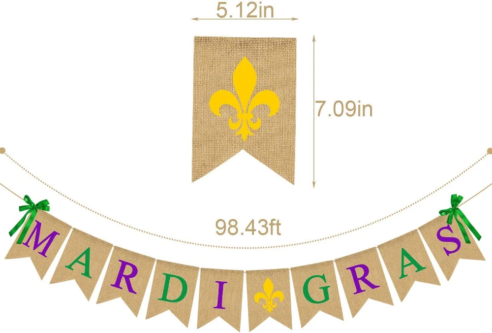 Jute Burlap Mardi Gras Banner March Party Mantel Fireplace Garland Decoration Su