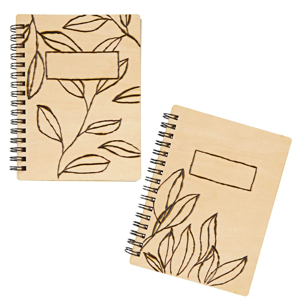 This set of 4 hardcover wooden blank notebooks is the perfect tool to always be prepared to take notes, doodle, or journal about your day. With plain pages, these wire-bound notebooks allow you to use them however you choose. They offer endless possibilities, whether you use them as a daily journal notebook, a place to practice hand-lettering or drawing, or take notes for classes or meetings. They are also ideal for children as a creative outlet, giving them a blank space to fill with sketches and doodles. The wire ring bindings allow the spiral journal to lay flat when open for easy writing. The set includes 4 blank journals measuring 4.5 x 5.8 inches, making the DIY journal compact and convenient. With their hardcover and wooden finish, they are not only functional but also stylish and durable. Overall, this set of blank notebooks is a versatile tool for anyone who wants to jot down ideas, doodle, or document their daily life. With endless possibilities, each wooden sketchbook is a must-have for those who value creativity and self-expression. Wooden Cover Notebook: These wooden journals with laser engraving blanks are ideal for taking notes, keeping work in order, brainstorming ideas, creative writing, and doodling your arts and crafts Personalized A6 Notebook: Our plain journals can be easily customized with stamps, stencils, tape, and markers; use each journal notebook alone or insert them into a cover or leather sleeve Reliable Quality: The lay-flat journal covers are made from high-quality plywood and feature blank paper that will not bleed your pens, markers, or highlighters The Perfect Size: Each wood notebook journal measures 4.5 x 5.8 inches, perfectly sized to throw into your backpack, tote bag, or purse for on-the-go note-taking Comes With: You will receive 4 travel journal wooden notebooks, including 20 sheets; 40 pages total, to uncover your inner explorer - the perfect start to your journey