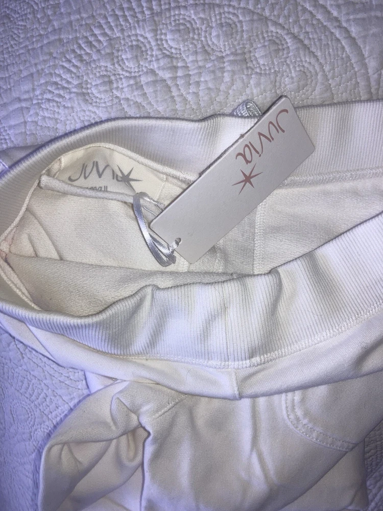 Die weiße Hose von JUVIA in Größe S ist ein neues und ungetragenes Kleidungsstück mit Etikett. Mit ihrem geraden Bein und dem Jersey-Gewebe bietet sie einen bequemen und stylischen Look für Damen. Die Hose ohne Muster passt perfekt in die Kategorie der Damenmode und ist eine tolle Ergänzung für jeden Kleiderschrank. Keine Rücknahme keine Garantie