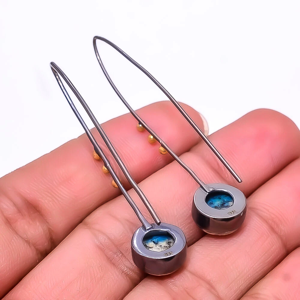 Theme Beauty Main Stone Depth As Seen in Picture Main Stone Length As Seen in Picture Main Stone Width As Seen in Picture Seller Warranty Yes Shape As Seen in Picture SKU E_9420_240_51 Main Stone Cut Type Cabochon Main Stone Size 10X10 Mm Antique Yes Handmade Yes Type Earring Style Drop/Dangle Metal Sterling Silver Metal Purity 925 Parts Per 1000 Base Metal Sterling Silver Total Carat Weight 20.5 Main Stone Quartz Main Stone Creation Natural Main Stone Shape Round Main Stone Color Blue Main Stone Treatment Natural Material Gemstone, Stone Number of Gemstones 2 Item Length 1.95 Features Engraved, Nickel-Free, Handcrafted Ear Area Lobe Brand Unbranded Country/Region of Manufacture India Country of Origin United States Color As Seen in Picture Diamond Clarity Grade Not Applicable Number of Diamonds As Seen in Picture Item Diameter As Seen in Picture Gemstone Clarity Grade Opaque Diamond Color Grade Not Applicable Customized No Colored Diamond Intensity Not Applicable Certification 100% Genuine Guaranteed Setting Style Bezel Occasion Christmas, Birthday, Anniversary, Engagement, Wedding, Valen Shipping & Handling - Charge - 1st item-5.90 And Additional item-1.90 Handling Time - 1 Days . Delivery Time - 2 TO 3 DAYS. Shipping Service - USPS First Class Package 2 -3 Days. Returns - 1.We offer a 100% Money Back Guarantee minus shipping for 30 days after receiving the Item / item's. 2..The item must not be altered or damaged in any way shape or form. 3.Upon receiving these items your payment will be refunded. 4.Email us for return instructions before sending merchandise back. 5.Please allow up to 1 business day for all returns to receive credit. 6.Sizing does not affect the return policy. Payment - We accept PayPal for Payment ,should made with in 14 days once buying or winning done , in case of late information expected .
