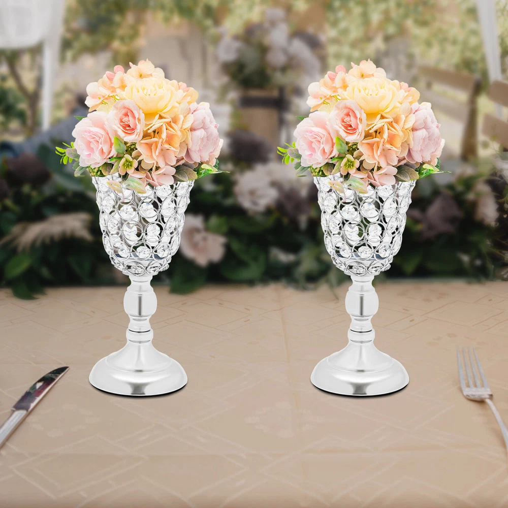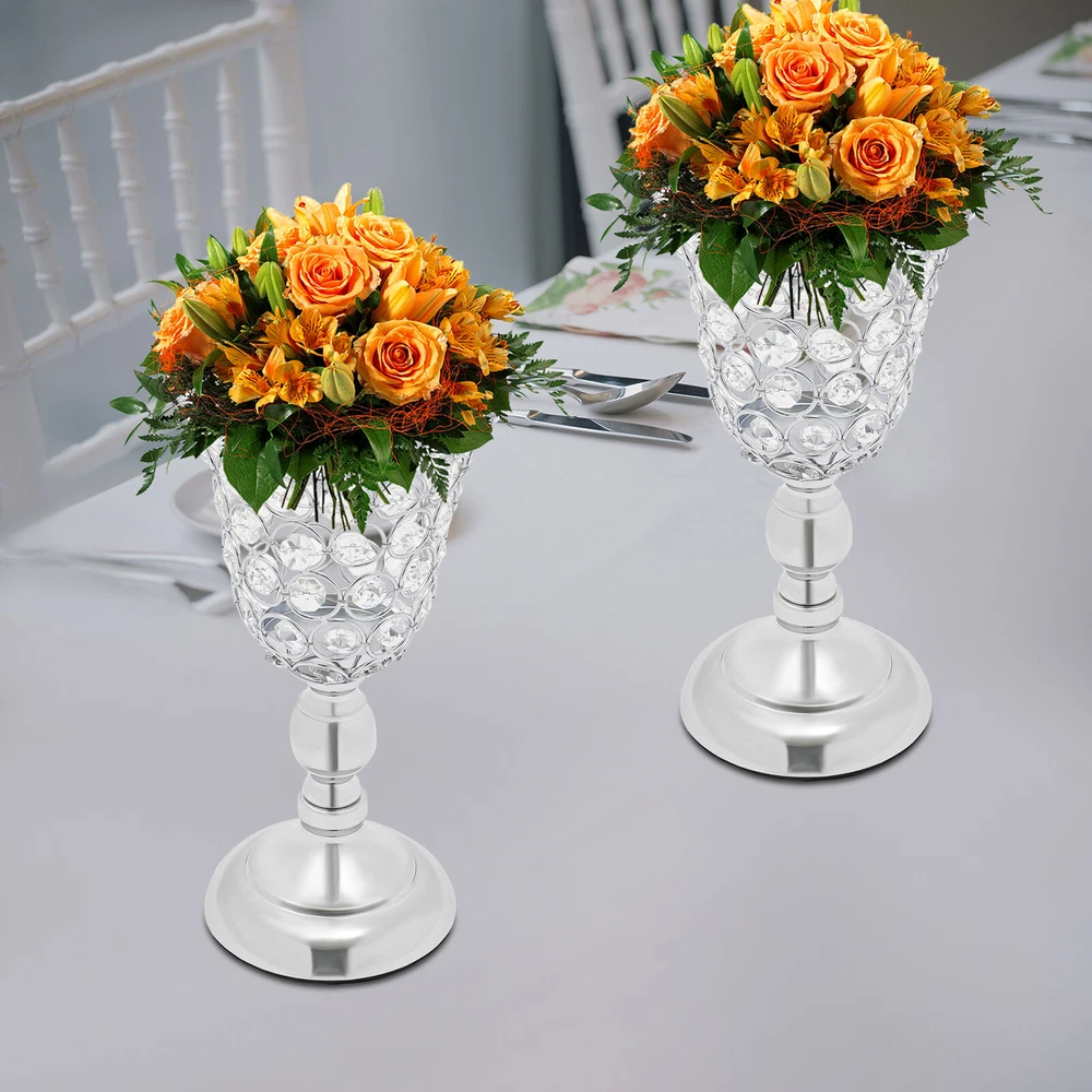 Specifications Color: Silver Style: Elegant Material: Iron, K9 Crystal, EVA Process: Electroplating Mounting Type: Tabletop Assembly Required: No Number of Pieces: 2 Base Diameter: 11cm/4.33in Each Top Diameter: 14cm/5.51in Each Product Height: 25.5cm/10.04in Package Size: 31*25*15cm/12.2*9.84*5.91in Gross Weight: 1.5kg/3.31lbs Net Weight: 1kg/2.2lbs Package Included 2* Wedding Flower Vases welcome Description Description As a wedding day approaches, it is essential to pay attention to the decorations, including the arrangement of fresh or artificial flowers. At a time when couples seek to create a romantic and enchanting atmosphere, wedding flower vases have become a popular choice. These elegant vases have been given an electroplating treatment to ensure their longevity and are ideal for decorating a wide range of spaces. Key Features Build to Last: The product mainly made of K9 crystal and iron with the electroplating process boasts high hardness, corrosion resistance, rust resistance, wear resistance , and a long service life. Elegant Appearance: Carefully designed trumpet shape, elegant silver color, and beautiful crystal beads give this product a pleasing appearance, paired with beautiful bouquets(not included), making the table decoration more attractive and unique, brightening up your wedding, and leaving impressions on your guests. Suitable Size: The appropriate base(4.33 inches) and height(10.04 inches) make this product an excellent decoration for placing on the table. Cost-effective: This set includes 2 pieces to keep your tables from monotonous. You can also purchase more to meet your needs. Moreover, they are reusable, saving you the cost of replacing other decorations next time. Easy to Install: A full range of accessories and simple construction allow you to install and use this product easily and quickly. Simple Clean-up: It has a smooth surface and a simple structure, so you only need to wipe the dust off its surface with a towel(not included). Ideal Gift: Its gorgeous appearance makes it an excellent gift for your friends, families, and colleagues to decorate their rooms or event sites. Protective Package: To prevent the product from being damaged during transportation, we packed it with bubble bags to protect your products to the maximum extent possible. Buy with Confidence: We stand behind all our guests and look forward to assisting you with your purchase. It is our pleasure to answer your confusion and questions. The end of the story between us is not "we sell and you buy". Details Sturdy Base: The 4.33-inch round base with an EVA pad gives stable support, preventing it from easily sliding or wobbling. Large Opening: Its 5.51" diameter can hold more flowers and artificial flowers(not included) for more beautiful arrangements. Application It can be a nice centerpiece decoration for weddings, Christmas, Thanksgiving Day, New Year, Valentine's Day, parties, dinners, holidays, birthdays, anniversaries, or other special events. It is suitable for homes, living rooms, dining rooms, bedrooms, tabletops, dining tables, shelf decors, offices, etc. Specifications Color: Silver Style: Elegant Material: Iron, K9 Crystal, EVA Process: Electroplating Mounting Type: Tabletop Assembly Required: No Number of Pieces: 2 Base Diameter: 11cm/4.33in Each Top Diameter: 14cm/5.51in Each Product Height: 25.5cm/10.04in Package Size: 31*25*15cm/12.2*9.84*5.91in Gross Weight: 1.5kg/3.31lbs Net Weight: 1kg/2.2lbs Package Included 2* Wedding Flower Vases Notes Please carefully check if the size is suitable before placing an order. Flowers are not included in the package. The product adopts a hollow design and cannot hold water. Please allow the slight color difference caused by the shooting light and 1-3cm error due to manual measurement, and make sure you do not mind before you order. Payment Delivery details Terms of sales About us Contact us Payment We accept ebay payment 。 Fees such as import duties, taxes are not included in the item price or shipping costs. These charges are the buyer's responsibility. Delivery details Shipping: 2-9 working days to: USA Terms of sales We maintain high standards of excellence and strive for hundred percent customer satisfaction. Feedback is very important to us. We hope that you contact us immediately before you give neutral or negative feedback, so that we can address your concerns. It is impossible to address issues if we do not know about them! About us Your satis faction is our ultimate goal. We work hard to earn your trust and future business. Our certified technicians have tested each item before shipping. The unit comes with 1 year limited warranty on all manufacturing defects. a) If you receive a defective item, you may return it or ask for a discount. Please contact us within 14 days after you receive the package. b) What you returned must be intact and in its original packaging as re? u. Customer is responsible for shipping costs of the returned item. c) We will cover the cost of shipping back t with the shipping rate indicated in the registration page. We will send you a new unit or refund the full payment you paid. Thank you. Contact us Business Hour Business Hour: Monday To Friday: 8:30 AM to 5:00 PM (Beijing China time) Due to time zones, our reply to your questions may not be immediately. But within above working time, we will reply your email within 24 hours. If it's non-workdays, please kindly be patient and wait till Monday. Please contact us with ebay message. Please feel free to contact us if you have any questions. Monday To Friday: 8:30 AM to 5:00 PM (Beijing China time) Due to time zones, our reply to your questions may not be immediately. But within above working time, we will reply your email within 24 hours. If it's non-workdays, please kindly be patient and wait till Monday. Please contact us with ebay message. Please feel free to contact us if you have any questions.