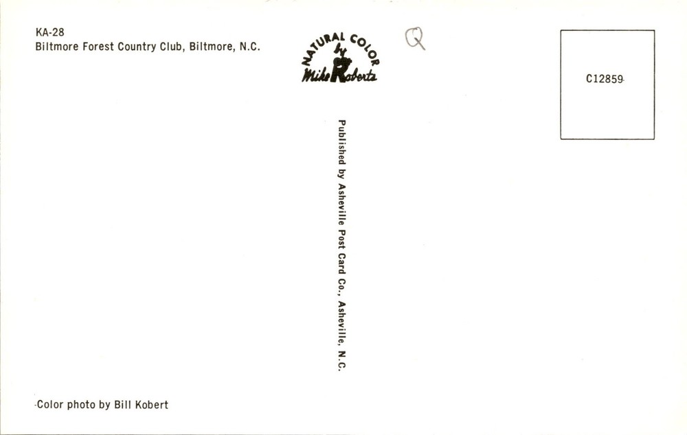 MAKE AN OFFER. THE MORE YOU BUY THE BETTER DEAL I WILL ACCEPT This postcard features a color photo of the Biltmore Forest Country Club located in Biltmore, North Carolina. The image was taken by Bill Kobert and published by the Asheville Post Card Co. in Asheville, N.C. The postcard is part of the NATURAL COLOR series by Mike Roberts, with the code C12859.