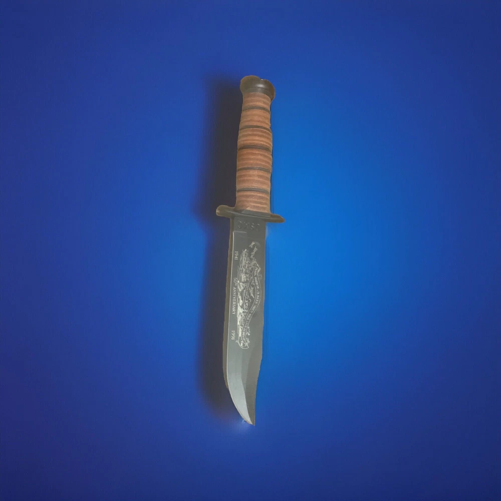 This KA-BAR 50th Anniversary Pearl Harbor commemorative knife is a must-have for collectors and enthusiasts. With a black drop point blade and a handle designed with the Ka-Bar Club logo, this combat knife is a beautiful piece of history from the United States. The blade is in excellent condition and ready for display or use. Don't miss out on the opportunity to own this piece of American heritage.