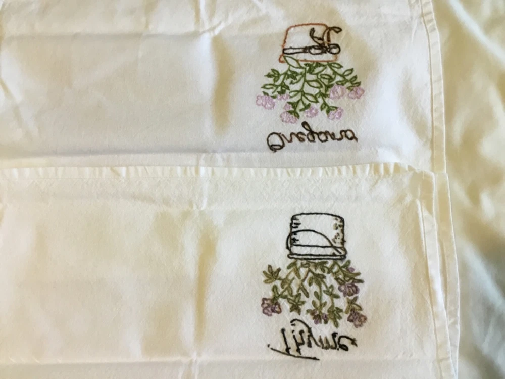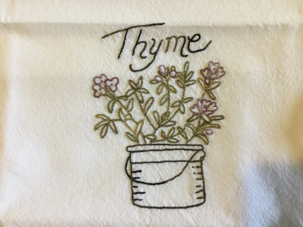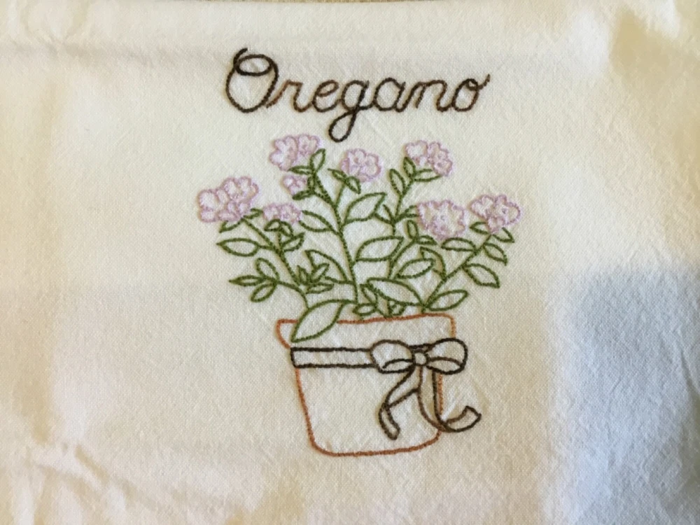 KAF HOME Kitchen TOWEL Artist Embroidered Herbal Designs. Set of 2
