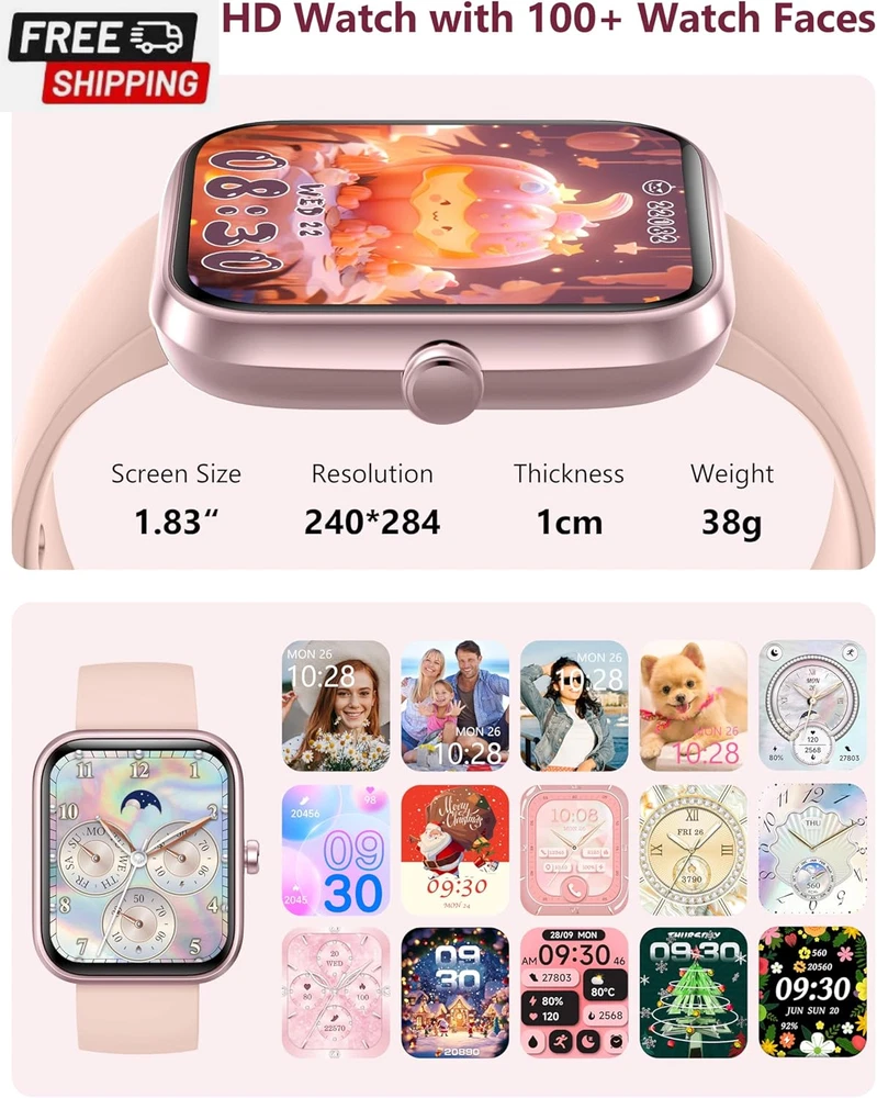 Absolutely love this smartwatch! The large 1.83" screen is crisp and responsive, making calls and tracking fitness effortless. Alexa integration is super handy, and the IP68 waterproofing means no worries during workouts or rain. Battery life impresses, lasting days on a single charge. The heart rate and sleep tracking are accurate, and the 100+ sports modes keep me motivated. Fast shipping, great customer support, and the 30-day guarantee gives peace of mind. Perfect for both Android and iOS usersโhighly recommend!