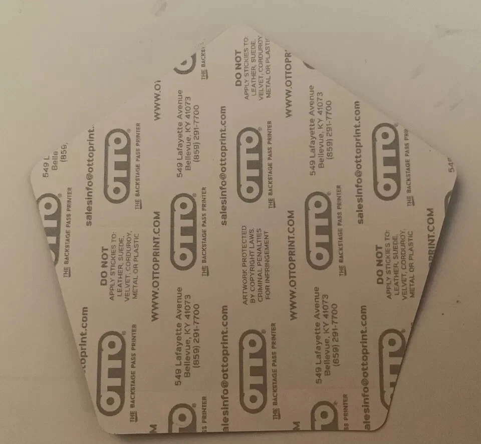 This listing is for a single backstage pass as shown and described above....These came in a large collection of passes from the owner of Otto Passes, David Otto...Otto Passes have been a go to name for artist for more than 40 years.. Please see the attached photo(s) and e-mail me with any questions prior to purchase...Stated shipping is inside the Continental USA... PLEASE NOTE....WE SHIP ON TUESDAYS AND FRIDAYS!!!