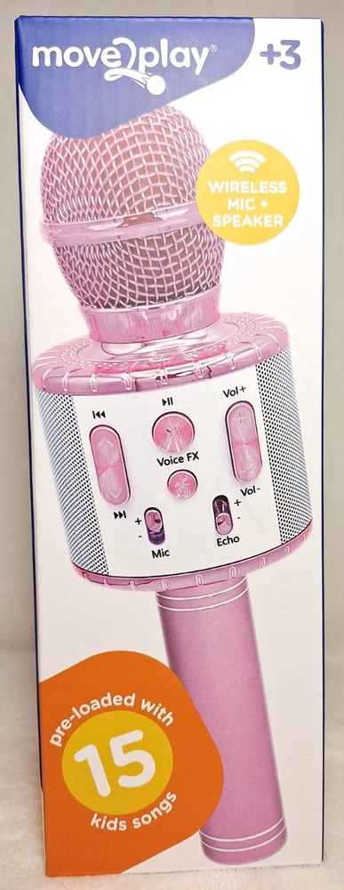 KARAOKE!!! Move2Play Bluetooth Microphone w/ 15 Pre-Loaded Kids Songs - Pink