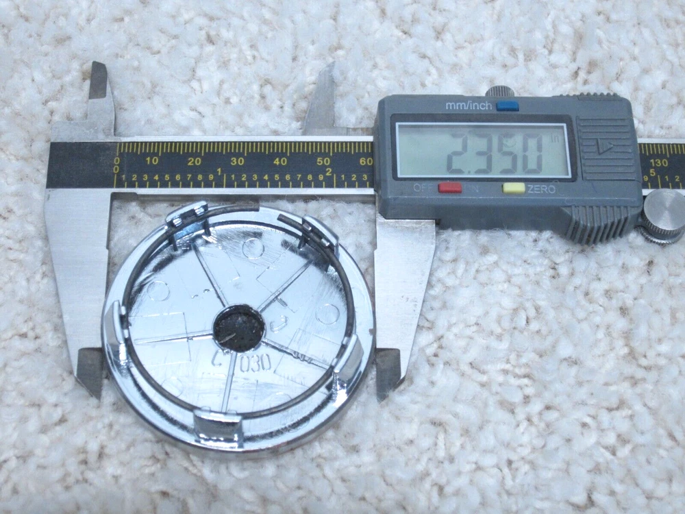 gtin13: Does not apply Finish: Glossy Emblem Type: Premier UPC: Does not apply Features: Car Wash Safe, Easy to Install, Lightweight, No Tools Required Outside Diameter: Approx. 2- 3/8 inches Placement on Vehicle: Front, Left, Rear, Right Modified Item: No Custom Bundle: No OE/OEM Part Number: C030 Seller Notes: “Few marks / Fade / Good clips” Number in Pack: 1 Brand: Katana Material: Plastic Type: Wheel Center Cap Manufacturer Part Number: C030 Color: Chrome - Brush look