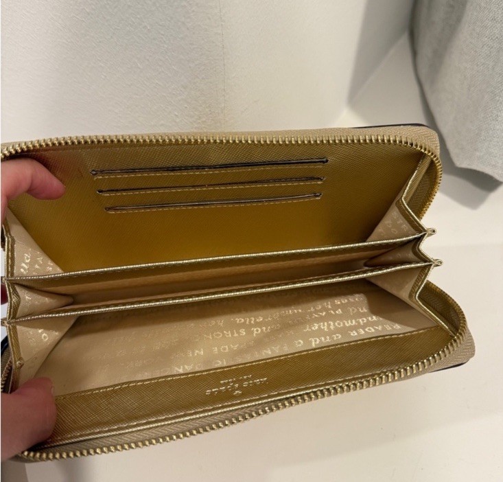 KATE SPADE NEW YORK ACCORDIAN GOLD LEATHER ZIP AROUND WALLET-read description