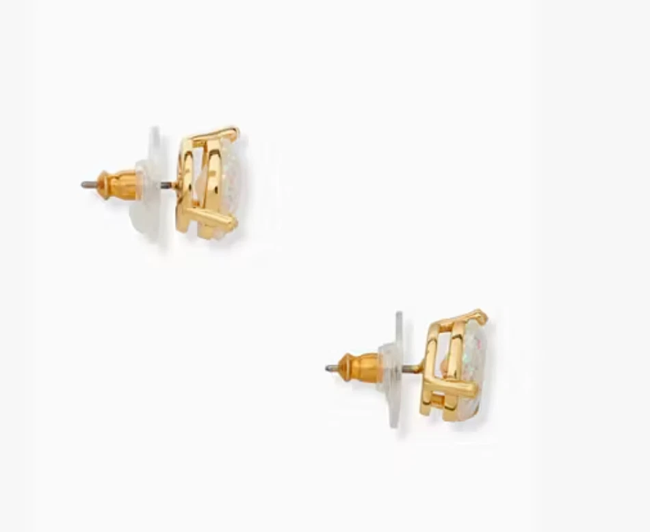 KATE SPADE RISE AND SHINE FAUX OPAL GLITTER STUD EARRINGS Product Details plated metal earrings with disk clutch closure