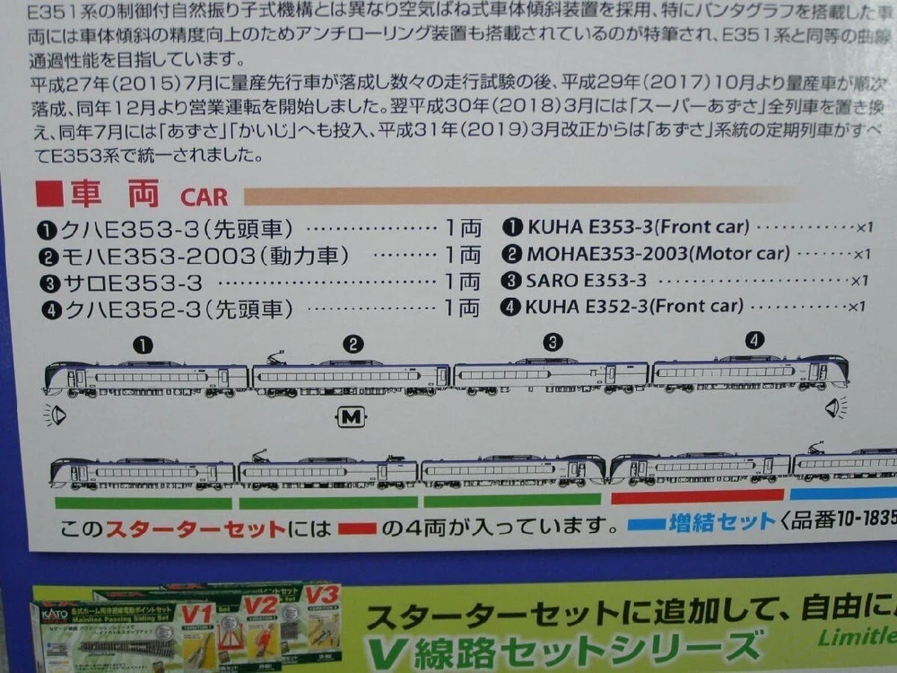 ■■■Product■■■ KATO Starter Set E353 Series "Azusa/Kaiji" [10-028] (Model Train N Gauge) 【condition】: NEW Contents ●The E353 series "Azusa/Kaiji" starter set currently in service at JR East is being reproduced. The E353 series, which began commercial operation in December 2017, is the successor to the E257 series and E351 series that were previously used on the "Azusa" and "Kaiji" lines. Its main feature is that it uses an air spring type car body tilting device and has the same curve passing performance as the E351 series. The simple and powerful design, with an alpine white body and Azusa violet stripe, is full of speed and truly symbolizes a new era of express trains. Product Features ●The vehicles included in the set are the same as those in the <10-1834 E353 series "Azusa/Kaiji" basic set (4 cars)>. ●The Unitrack track is equivalent to one endless lap of the M1 set. By adding the Unitrack "V track set series", a variety of track developments are possible! ●The power pack uses the "Power Pack Standard SX (black)" (with dedicated AC adapter) with global power supply specifications and output of 1.2A. ●The included plan variation guide is a treasure trove of track plans. You can enjoy a more expandable system development. ●There is a "secret pocket" inside the package where you can store cases and tracks of vehicle sets purchased later. Product contents ←Shinjuku・Tokyo ●Kuha E353-3 ●Moha E353-2003 ●Salo E353-3 ●Kuha E352-3 Matsumoto・Minami Otari→ Product specifications ●Scale: 1/150 9mm (N gauge) ●Product form: Painted finished product ●Body material: Plastic ●Motor: Equipped with slotless motor ●Lights: Head/tail lights on Accessories ●Driver for light off switch ●Destination display sticker ●Relayer quick start guide ●Plan variation guide [Recommended age]: 8 years old and above ■■■About Shipping■■■ We will carefully deliver your order using packaging materials. Currently, the shipping method is Fedex,DHL or EMS. This will be determined by the shipping address and total weight. If you have a preference regarding the shipping method, please let us know when ordering. ■■■Shipping Duration■■■ [Fedex or EMS]2-7buisiness day ■■■Payment■■■ You can choose the payment method. Paypal, credit card, Google Pay, etc. We ship the item from Japan . We usually ship the item within 5 business days of receiving payment. We accept return the only case of unopened item package. Import duties, taxes, and charges are not included in the item price or shipping cost. These charges are the buyer’s responsibility. ■■■International Buyers Please Note ■■■ Import duties, taxes and charges are not included in the item price or shipping charges. These charges are the buyer’s responsibility. Please check with your country’s customs office to determine what these additional costs will be prior to bidding/buying. These charges are normally collected by the delivering freight (shipping) company or when you pick the item up – do not confuse them for additional shipping charges. We do not mark merchandise values below value or mark items as “gifts” – US and International government regulations prohibit such behavior.