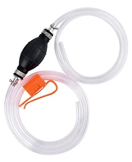 Return Policy Fast Delivery Trusted seller KATUMO Gasoline Siphon Hose, Gas Oil Water Fuel Transfer Siphon Pump, Portable Widely Use Hand Fuel Pump, Fuel Transfer Pump with PVC Hoses Product Description Premium Quality Rubber: The pump bulb is made of high quality rubber, thick and sturdy, build-in stop valve prevent backflow of the fluid for siphoning liquid flow quicker and faster. With 2 flexible PVC transparent hoses for visual liquid flow progress, high temperature and corrosion resistant, can be used for a long time. (The two hoses are in diferent size. The longer hose or the shorter hose can be placed at the source container or the container based on your use condition) Clip and Retainer Use: The two metal clips are for fixing the hoses in place with the pump bulb, prevent slippage or leakage. And an adjustable hose retainer is for keeping the hose standing into the container or receiver, avoid slipping out and permit one hand-free operation. Easy and Safe Siphon Pump: Say Good-bye to the dangerous and inefficient mouth suction way. Just connect the hoses to the pumb bulb, the black arrow towards the fluid following direction, put the upper hose into the source tank, a few squeezes of the bulb will get the fluid started following, then put the lower hose into the receiver tank, the fluid will flow automatically (The source fluid must be higher 11 inch or more than the receiver). Efficient Manual Siphon Pump: Hand siphon hose pump for gasoline, oil, water, diesel and other common liquids, ideal for emergency transfer. Also suits for fish tank, aquarium tank, small fountain and small air cushion swim pool water transfer. NOT for edible oil, drink water, salt water and any chemical liquids. Multi-Use Manual Transfer Pump: Lightweight hand siphon fuel pump is enough for simple daily use, suits for medium and small type equipments without anti-theft filter net, such as brush cutter, lawn mover, hedge trimmer, snow blower, motorcycle, scooter, ATV, lawn tractor etc, NOT for big truck types. Shipping Returns Payment Shipping Shipping is FREE to all addresses other than APO/PO boxes in the lower 48 states. All our stock ships from US-based warehouses. Shipped via USPS or UPS (depending on location and package weight) Unless stated otherwise, all orders will ship within 24-72 hours of your payment being processed. Check our feedback to see the great reviews of FAST shipping we offer. Returns Seller does not accept returns Payment We currently accept payment via eBay managed payments only. Once payment is cleared, we will dispatch your shipment within 1-3 business days. Please refer to the "Shipping" tab for more information regarding shipping speed to your destination.
