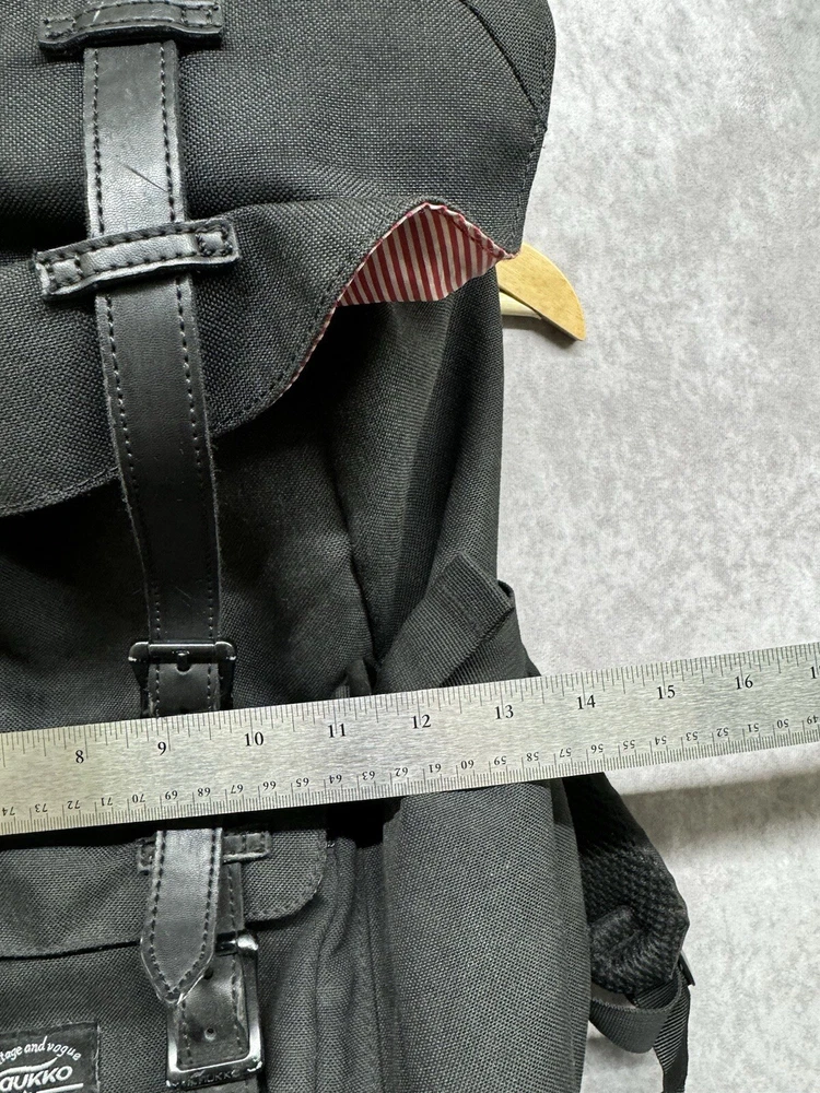 KAUKKO Canvas Flap Backpack - Black Satchel Laptop Carry Bag Hiking Camping. Condition is Pre-owned. Shipped with USPS Ground Advantage.