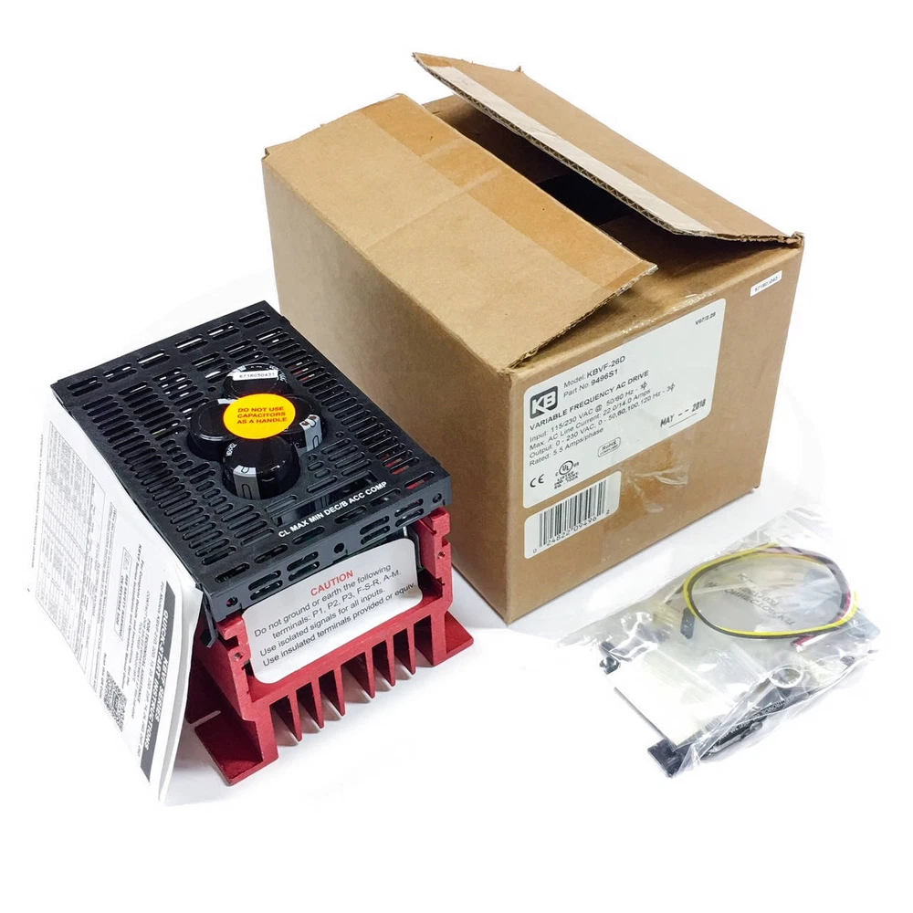 KBVF-26D Hybrid AC Drive, A Digital Drive with Analog Interface • IP 20 Enclosure Primary Features: • 1 ½ Horsepower • 1Ø Input 115/230 VAC, 50/60 Hz • 3Ø Output 230 VAC • 200% Starting Torque • Power and Status Indicators Additional Features: • Sensorless Flux Vector Control • Flux Vector Compensation with Static Auto-Tune provides excellent speed regulation • Electronic Inrush Current Limit (EICL™) Protection • Eliminates harmful inrush AC line current during power up. • Ride-Through • Holding Torque at Zero Speed • Regeneration Protection • Undervoltage and Overvoltage Protection • Short Circuit Protection • Basic, Programmable, Trimpot Adjustments Drive Options: • Drive-Link™ Programming Kit • SIVFR Signal Isolator and Run Fault Relay* • DIVF Modbus Serial Communication Module • Class “A” or “B” (CE) RFI Filter • DBVF Dynamic Brake Module • Multi-Speed Board • KBRK Remote Digital Keypad • IOVF Input/Output Multi-Function Module Dimensions approx. 4.7" x 5.7" X 4.5" Agency approvals: UL, CE, CSA, C-Tick, RoHS available