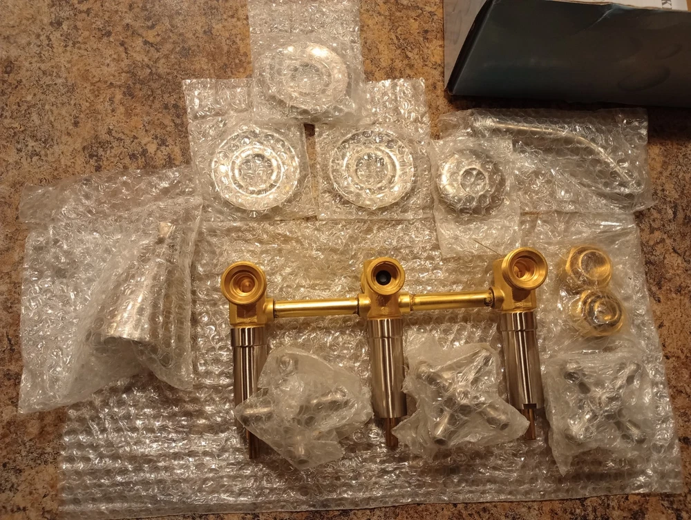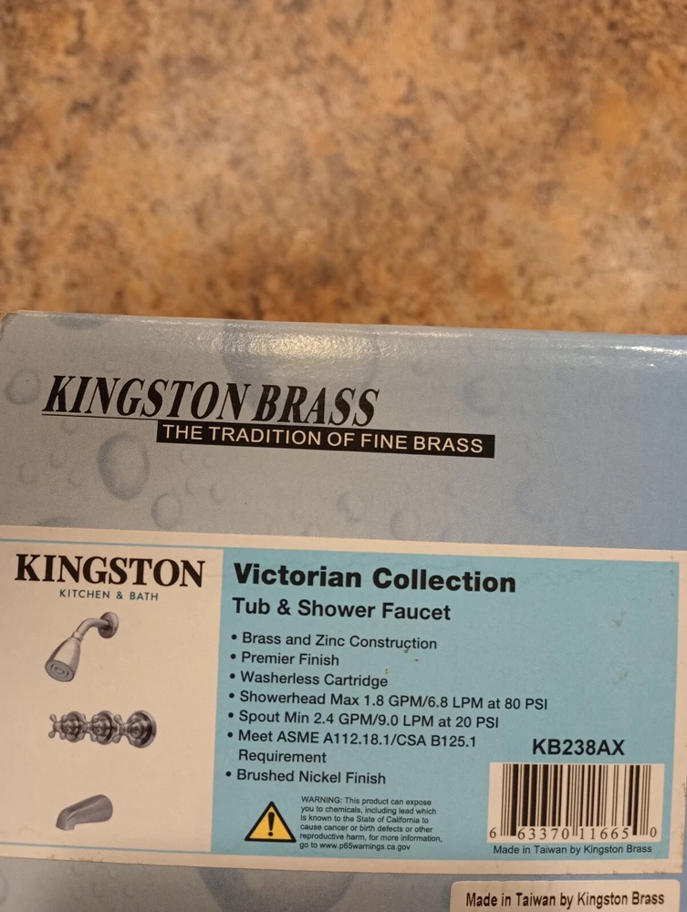 KB238AX Tub and Shower Faucet with 3-Cross Handle, Brushed Nickel,5-Inch Spou...
