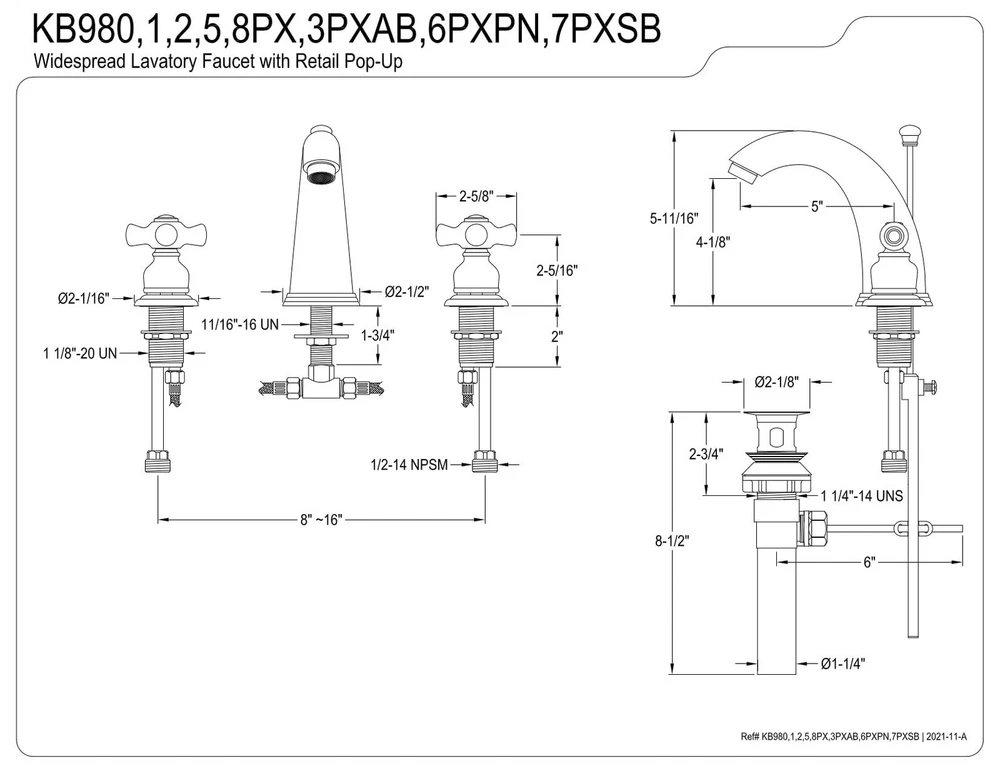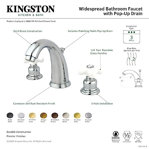 KB981PX Victorian Widespread Lavatory Faucet, Porcelain Cross Handle, Polishe...