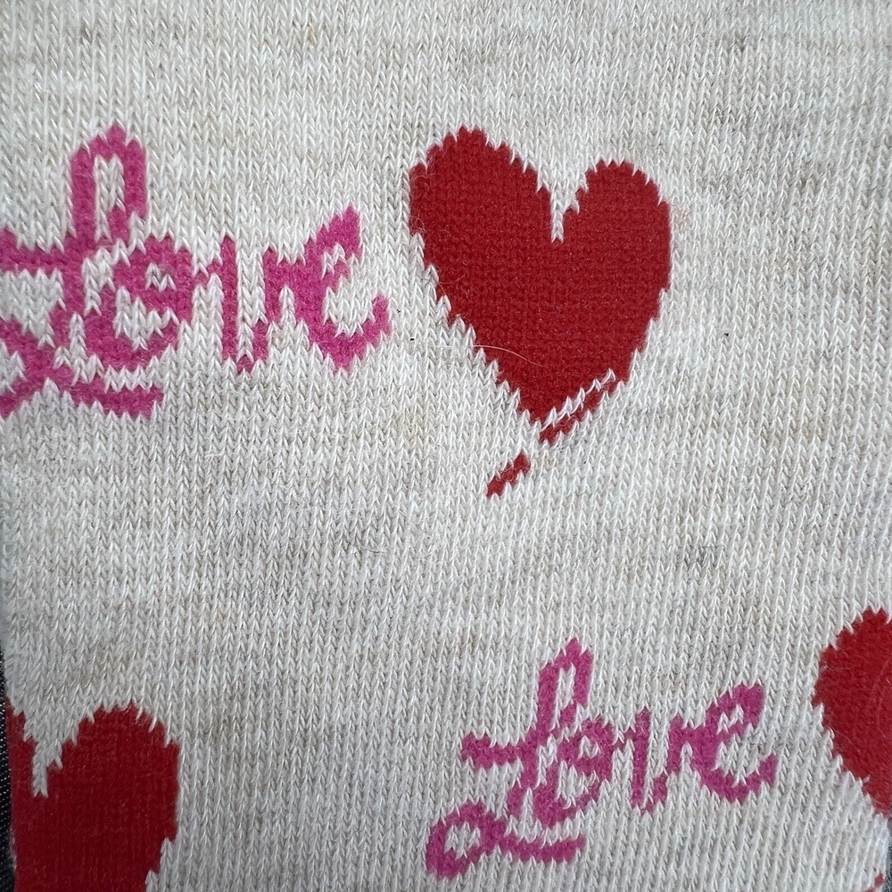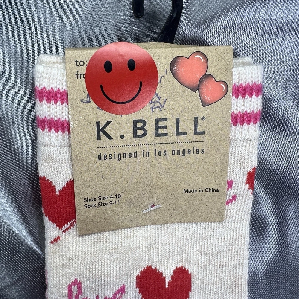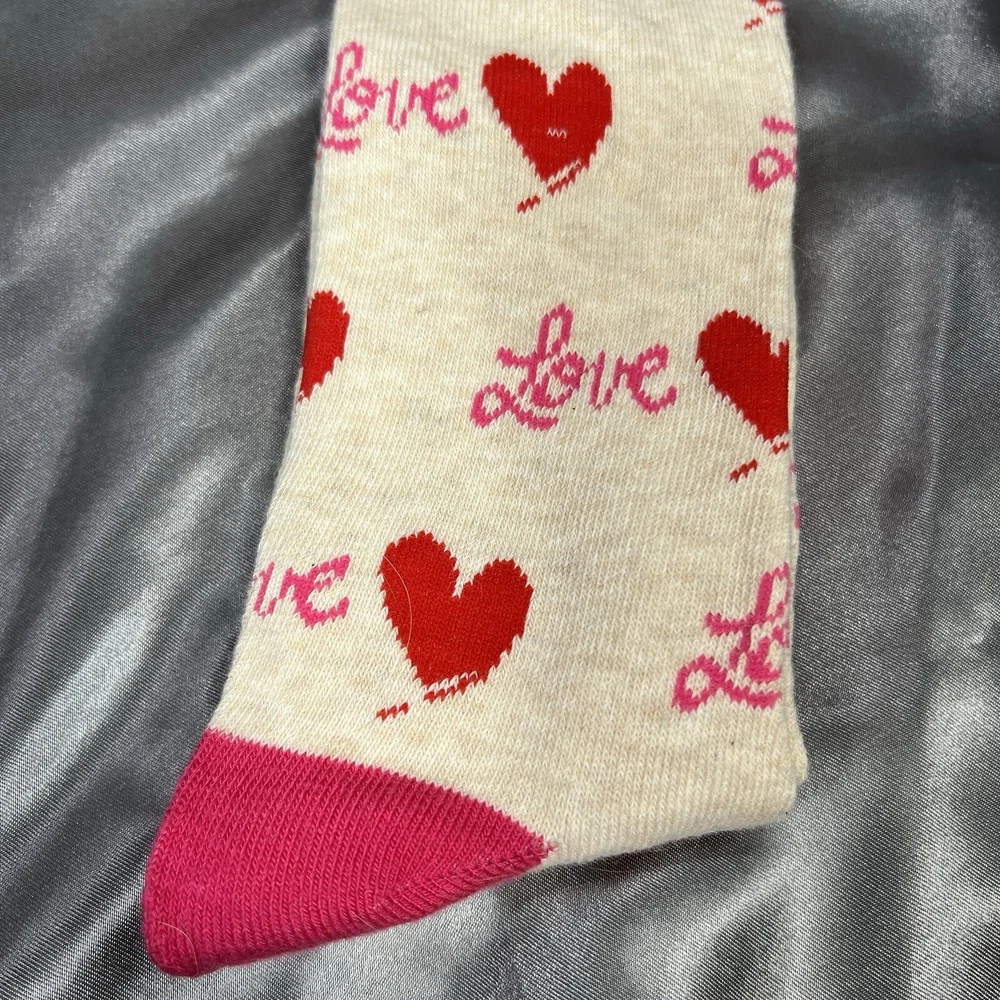 Toe Style: Full Toe Personalize: No Handmade: No Occasion: Casual, Workwear Theme: Christmas, Love, School, Wedding, Hearts, Valentines, Valentine, Party, Rave, Birthday, Gifts, Kidcore Department: Unisex Adults Character: Heart, Happy Season: Fall, Spring, Summer, Winter Sock Length: Over the Knee Brand: K. Bell gtin13: 0780512369832 Country/Region of Manufacture: China Type: Socks Style: Novelty Socks Size Type: Regular Size: 9-11 Color: Oatmeal HTR / Red / Pink UPC: 0780512369832 Material: Acrylic, Polyester, Spandex, Cotton Features: All Seasons, Lightweight Pattern: All Over Performance/Activity: Walking, Gifting Number in Pack: 1 Pair Garment Care: Machine Washable