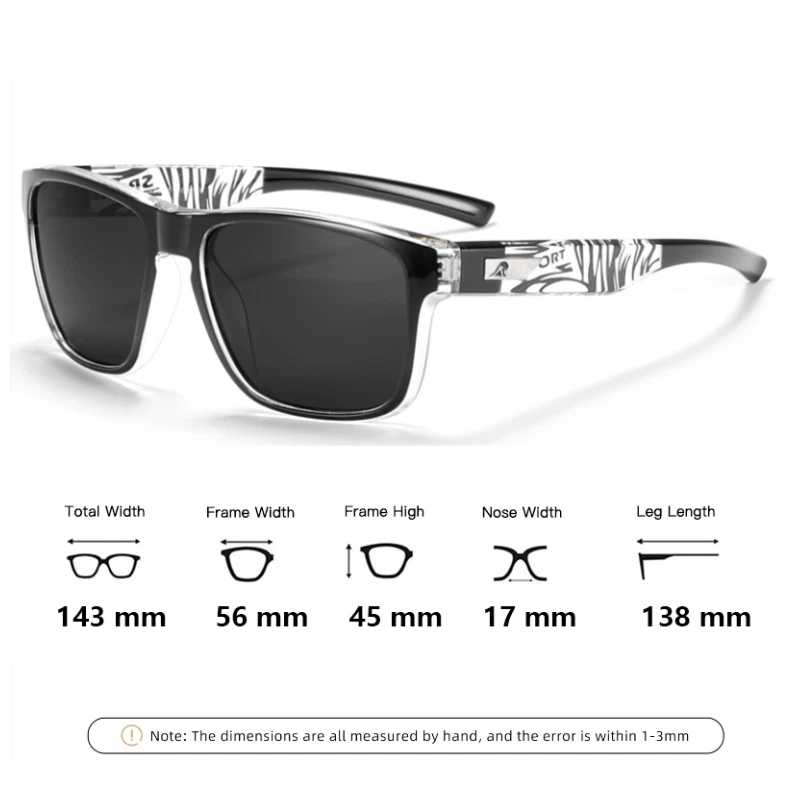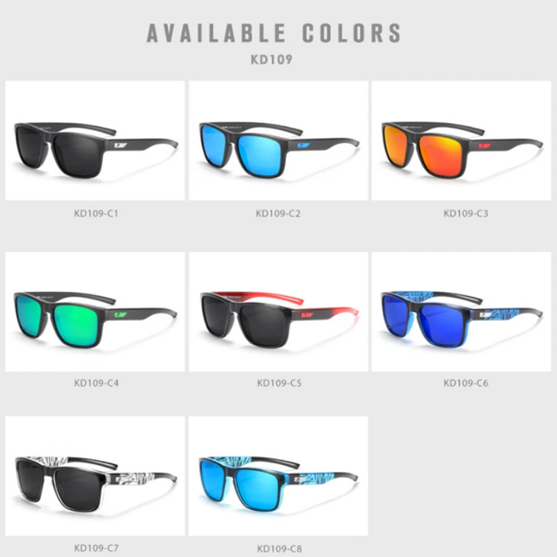 KDEAM Polarized Sport Sunglasses For Men Square Outdoor Driving Glasses UV400 Description Brand:KDEAM Frame Material : Plastic Lens material:TAC Visible Perspective Rate: 99% Anti-UV rating: UV400 Whether polarized : YES. Gender :Men Lens width: about 56 mm Lens height:about 45 mm Bridge: about 17 mm Frame Width: about 143 mm Temple Length : about 138 mm Package included: 1*Sunglasses(Not include boxes and other accessories) Note: 1. Due to the different monitor and light effect, the actual color of the item might be slightly different from the color showed on the pictures. Thank you! 2. Please allow 1-3mm measuring deviation due to manual measurement. Features Reflective UV Protection UV400 MPN Does Not Apply Department Men Frame Color Multicolor Frame Material Plastic Country/Region of Manufacture China Model 109 Brand KDEAM Lens Material Mirror, TAC Style Square Personalized No Lens Technology Polarized Theme Classic, Designer, Hipster, Logo, Outdoor, Retro, Sports Type Sunglasses Temple Length 138 mm