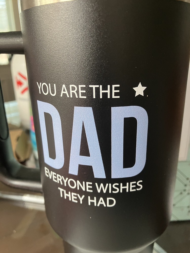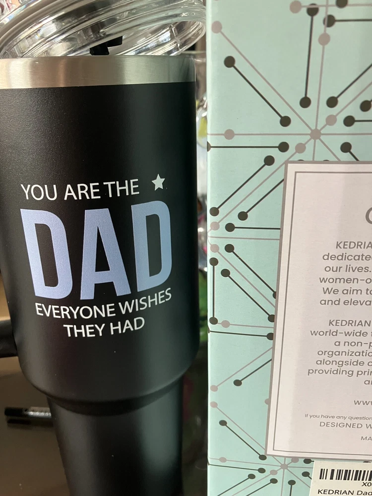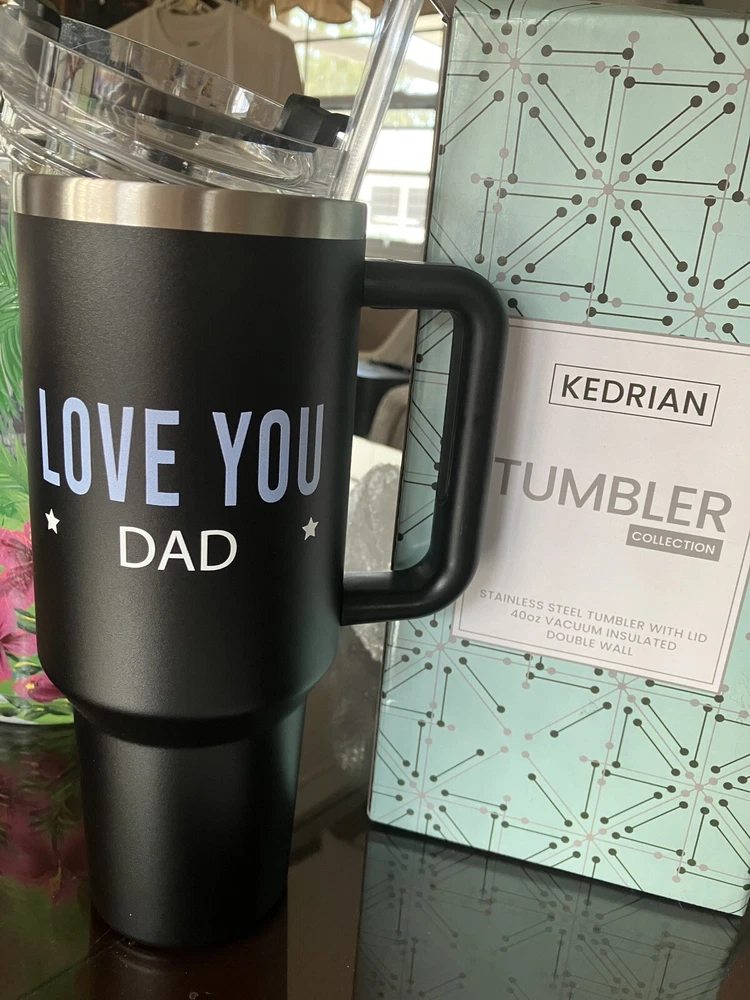 Enjoy your favorite hot or cold beverages on the go with this KEDRIAN Dad Tumber 40z Steel Tumbler. This vacuum insulated double wall tumbler is made of durable stainless steel and features a solid black color with a family and friends theme. The tumbler comes with a lid and straw, making it easy to drink from and decorate it with your favorite design. Ideal for adults, this Kedrian tumbler is perfect for use in the home, office, or on the go. Whether you're looking to keep your coffee hot or your water cold, this tumbler is the perfect choice. With its insulated design, your beverages will stay at the desired temperature for longer. Get your hands on this stylish and functional tumbler today! Outside says you are the DAD everyone wishes they had.Other side LOVE You DAD