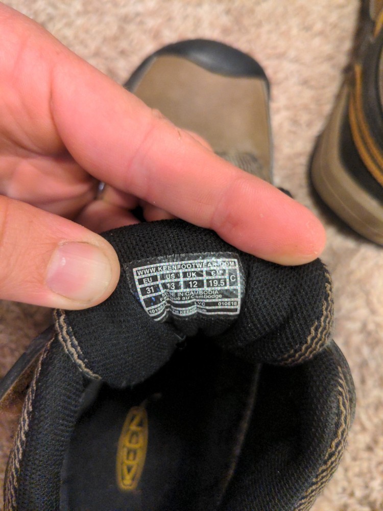 KEEN kids size 13 brown and black hiking boots. Practically new with almost no wear. Velcro strap to secure drawstring Bungie tie for stress free dressing. Waterproof! Smoke free home.