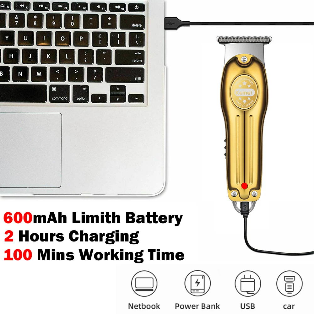 KEMEI Cordless Hair Clipper Professional Electric USB 0.00MM Hair Trimmer BK0005