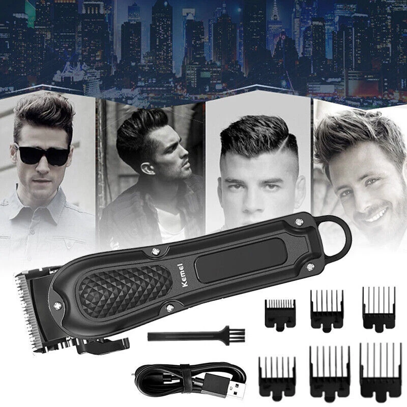 Kemei Professional Hair Clippers Cordless Trimmer Beard Cutting Machine Barber Item Description 2025 NEW Kemei Hair Clippers Trimmer Kit Men Professional Cutting Machine Barber Salon US FEATURES: COMPLETE HOME HAIR GROOMING KIT - Personal care hair trimmer with four attachment clipping comb,cleaning brush and charging adapter in a packing box to keep it all organized. It has everything you need for a quality haircut and a great styling kit for men for a hassle-free grooming experience at home or on the go CORDLESS HAIR TRIMMER with LED DISPLAY - Features a smart LED display, which clearly shows battery power in percent, charge indicator and lubrication reminders that helps get the job done even quicker. You can control the usage time according to remaining battery life. PRECISE LENGTH CONTROL - The product is equipped with a 0.5mm-2.0mm stepless adjustment device and 4 standard length limit combs respectively 3/6/9/12mm.SELF-SHARP STAINLESS STEEL BLADE to cut any hair type neatly and effectively without snagging, pulling or pinching RECHARGEABLE LONG BATTERY LIFE - Easy to use handy shaving sets that provides up to 3 hours of running time after 3 hours of charging. 100 - 240 worldwide voltage making an ideal choice for travel and business trips. It comes equipped with a long-lasting 2000mAh lithium battery that can be charged anytime, anywhere. ERGONOMIC DESIGN - Compact and lightweight, this wireless hair clipper that measures 7.28x 2.36 x 1.96 inches boasts an ergonomic design for easy maneuvering and optimal control that helps you to avoid hand, wrist, and arm fatigue during a busy day SPECIFICATION: Input Voltage: AC 100-240V 50/60Hz Power: 5W Charging time: 3hours, Useing time: 120min Color:Golden PACKAGE LIST: 1*Machine 1*Adapter 4/6/10 Auxiliary comb 1*Hair brush 1*comb 1*Manual 1* Lubrication oil Warm Tips Please apply oil to lubricate the head to improve the hair clippers' efficiency and maintain its performance. The hair clipper set is driven by motor power so working sounds below 60 decibels are normal, and do not worry about safety. The hair trimmer will become hot after continuous use for more than ten minutes, but it does not exceed 122 degrees Fahrenheit and is safe. Detail Images Shipment All item will be carefully packaged very well with safe material and shipped to US States. Items will be sent in 1 working days,usually shipped by USPS Priority Mail. It will take about 3-5 days to US addresses. If you would like to ship by other shipment methods,please contact us.( shipping cost will be combined for multiple items you purchase at a time.) Payment Only PayPal is acceptable.It is a safe and easy payment method for buyers. Please pay in 48 hours after you win the item(s).If payment cannot be made in five days,your order(s) will be claimed as unpaid case and the item will be relisted. Return & Refund Customer satisfaction is our first priority. 30-days return is available after delivery. However, return shipping and insurance cost will be on buyers. Please email us before returning. Delivery date will be different according to UPS or USPS tracking system, so please inspect your item immediately upon arrival. Money will be return to you after the return item is sent back. We can not refund to you, if your return item is broken or damaged. Please ensure its safety. Feedback Your feedback is very important to us. If you can't leave us a "5-Star" rating and a positive feedback, please contact us without hesitation before leaving feedback. We are eager to work with our customers. We believe in communication. Give us a call or send us an email, we will make things right for our buyers. Positive feedback for our buyers will be left automatically by eBay Seller Manager Pro.